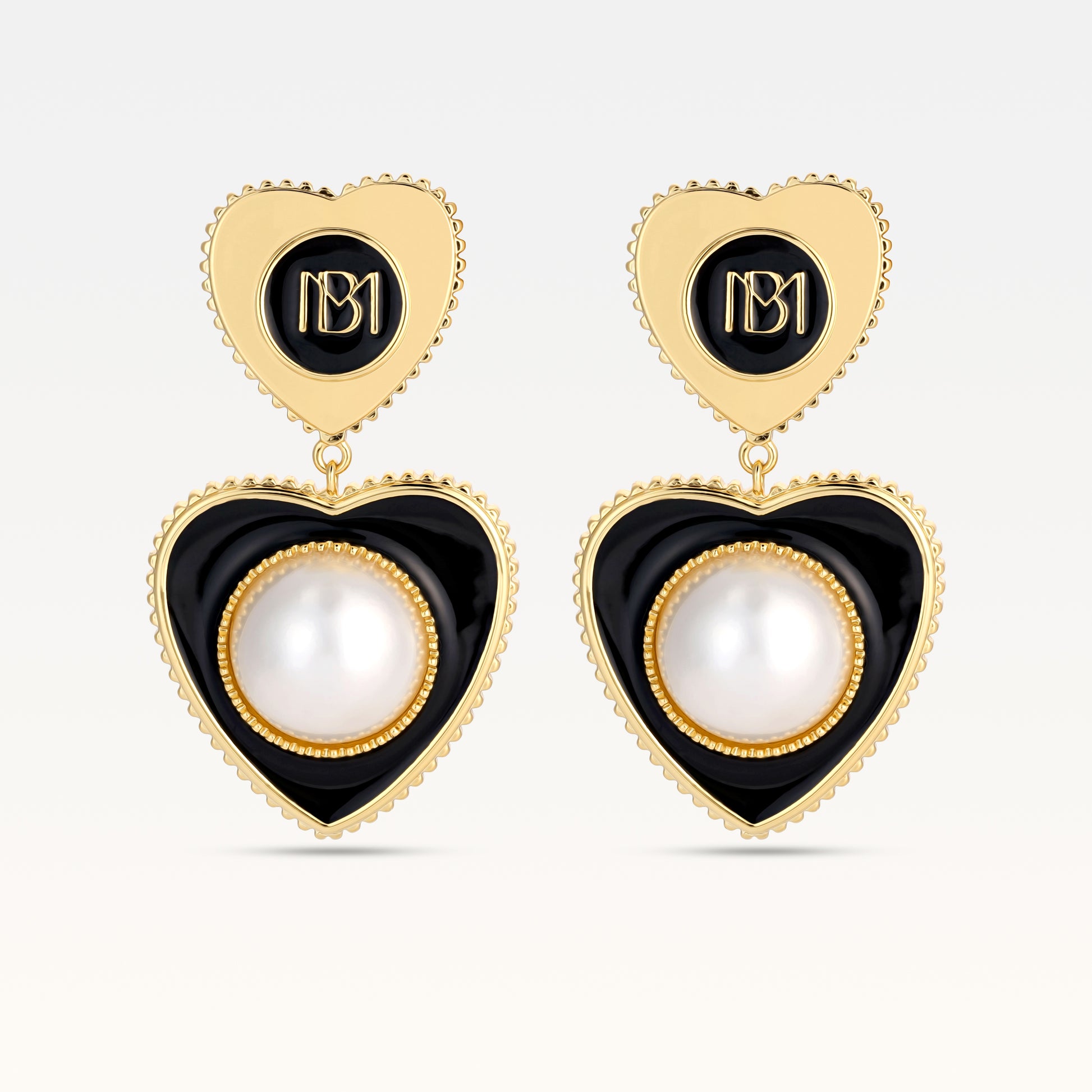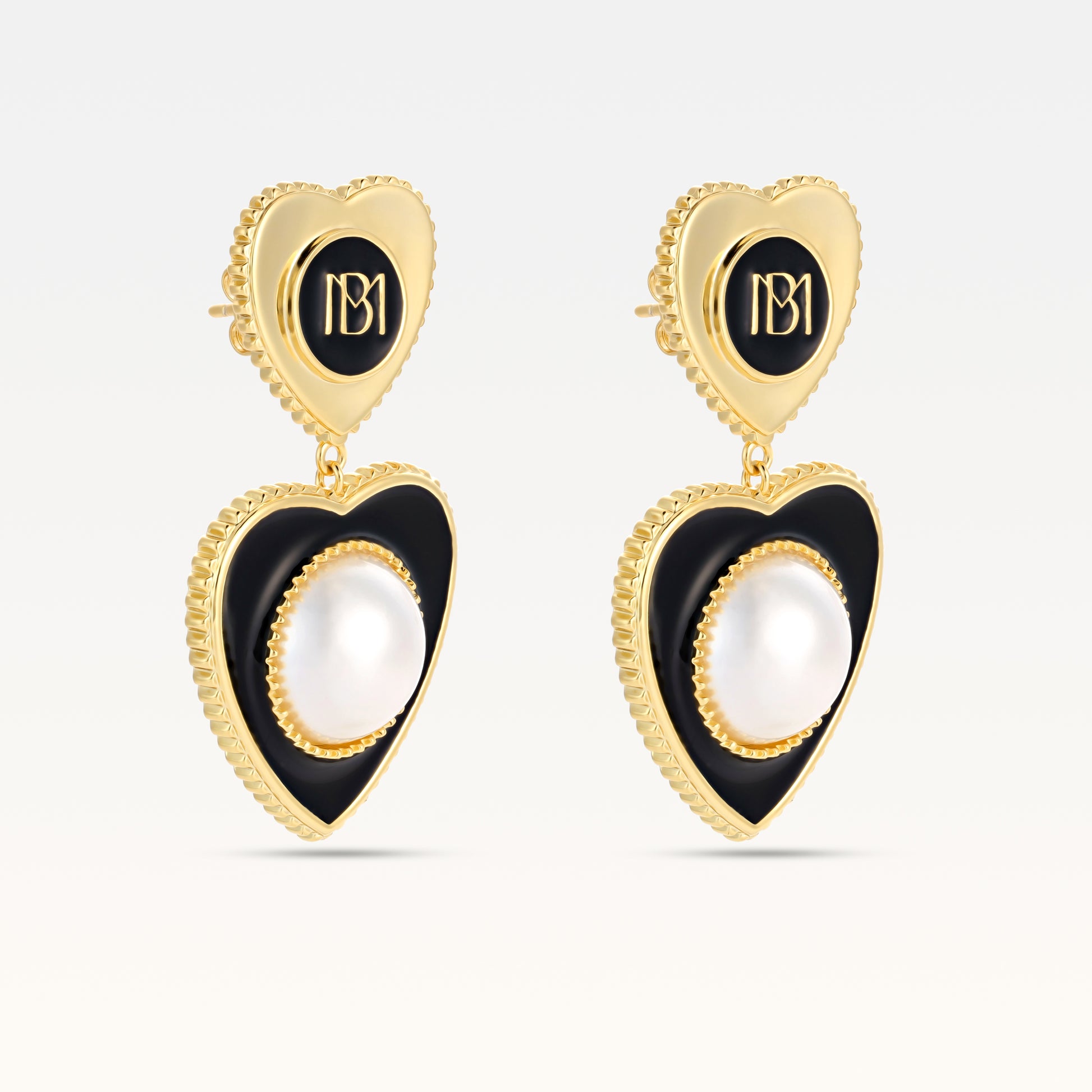 MB Signature Gold Plated Coeur Noir Pearl Earrings