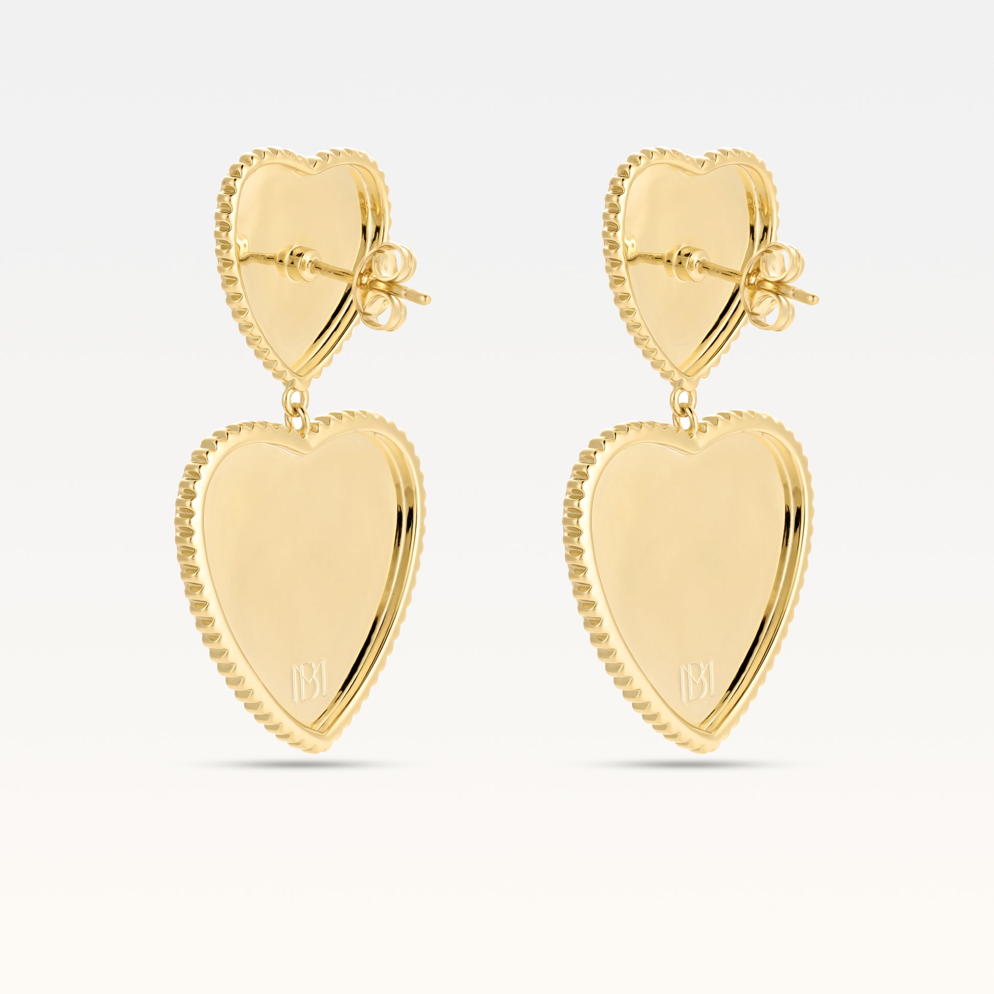 Measuring 40mm x 22mm, they offer a sleek and sophisticated silhouette that enhances both casual and formal looks. Lightweight at just 6.15g per earring, the MB Signature Gold Plated Coeur Noir Pearl Earrings are designed for effortless wear, making them perfect for all-day elegance.