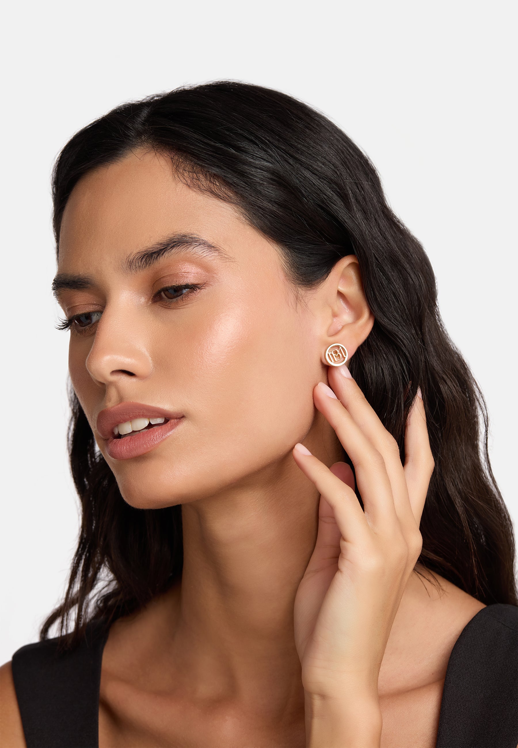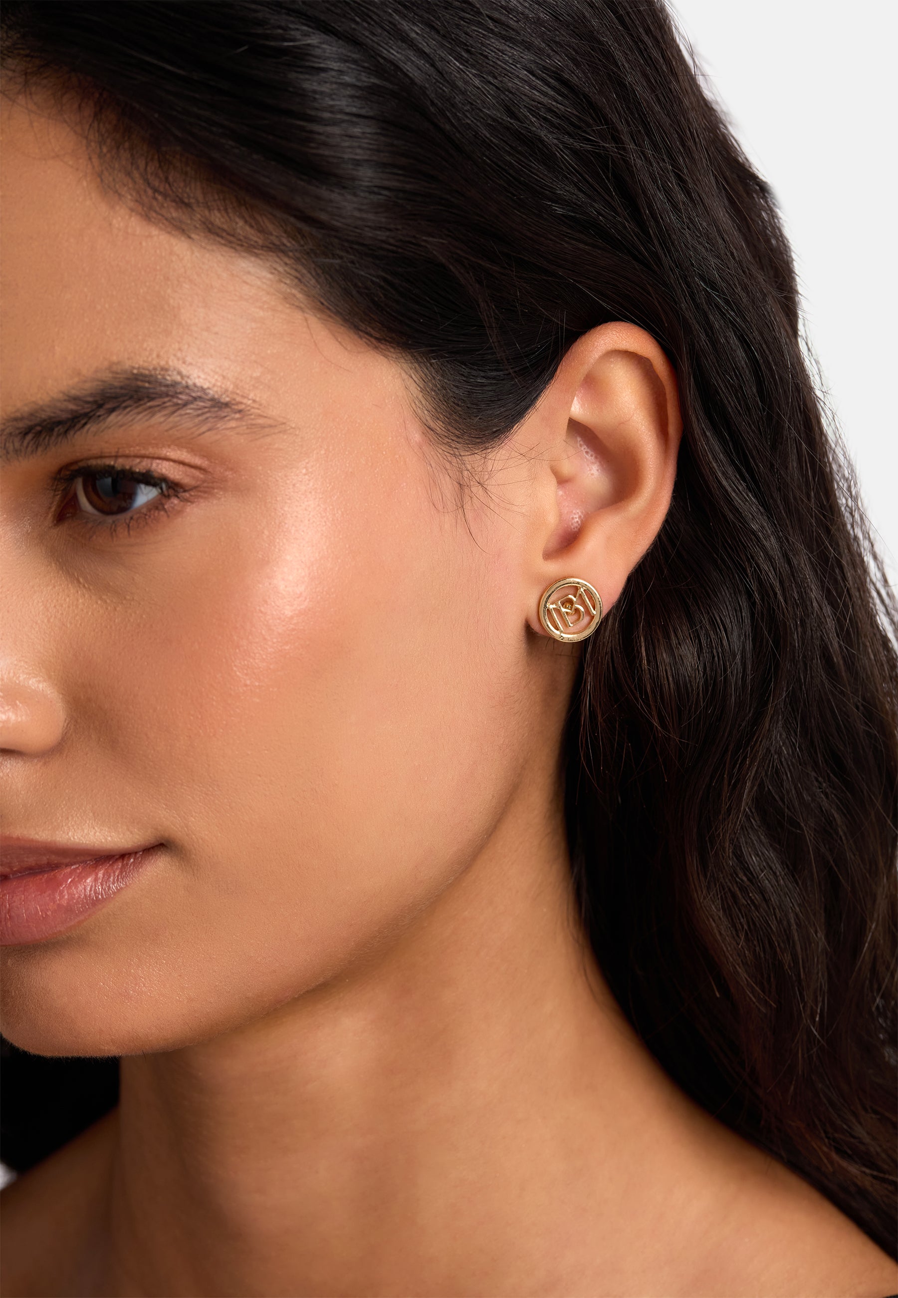 Enhance your everyday style with Margot Bardot’s MB Signature Gold-Plated Stud Earrings. Measuring 12mm, these simple yet elegant studs are crafted from 18K gold-plated brass with a high-polish finish.