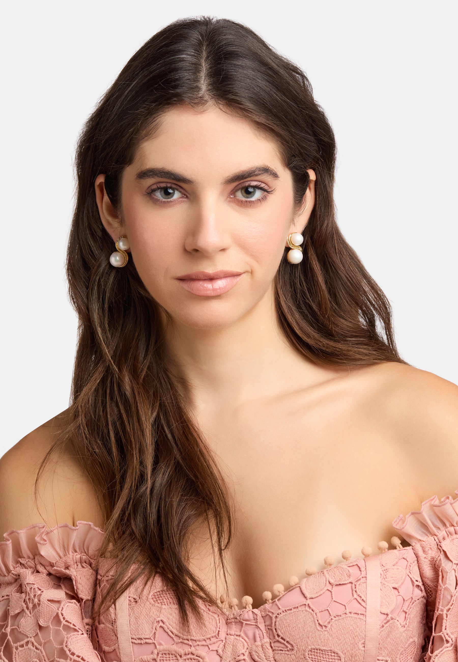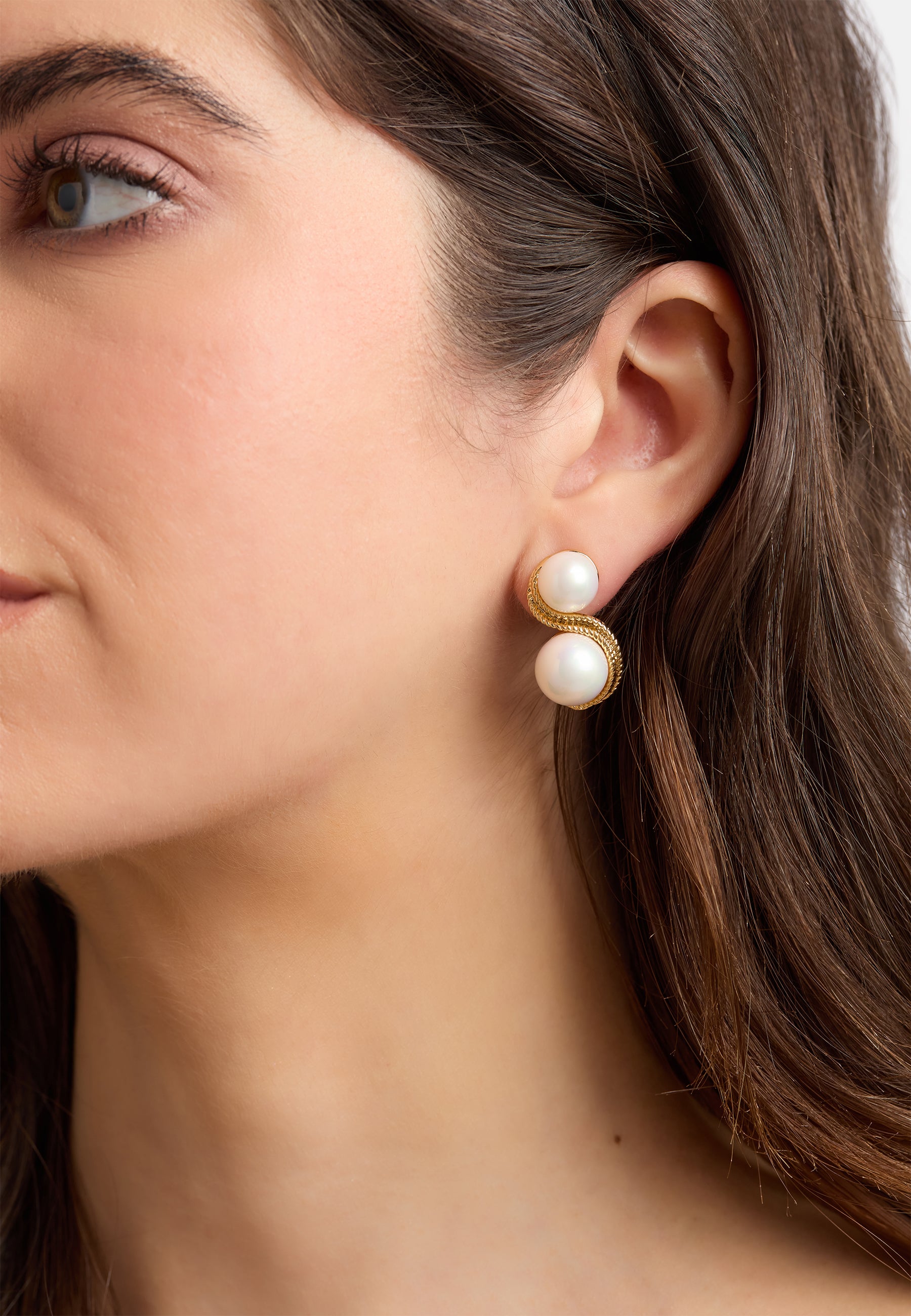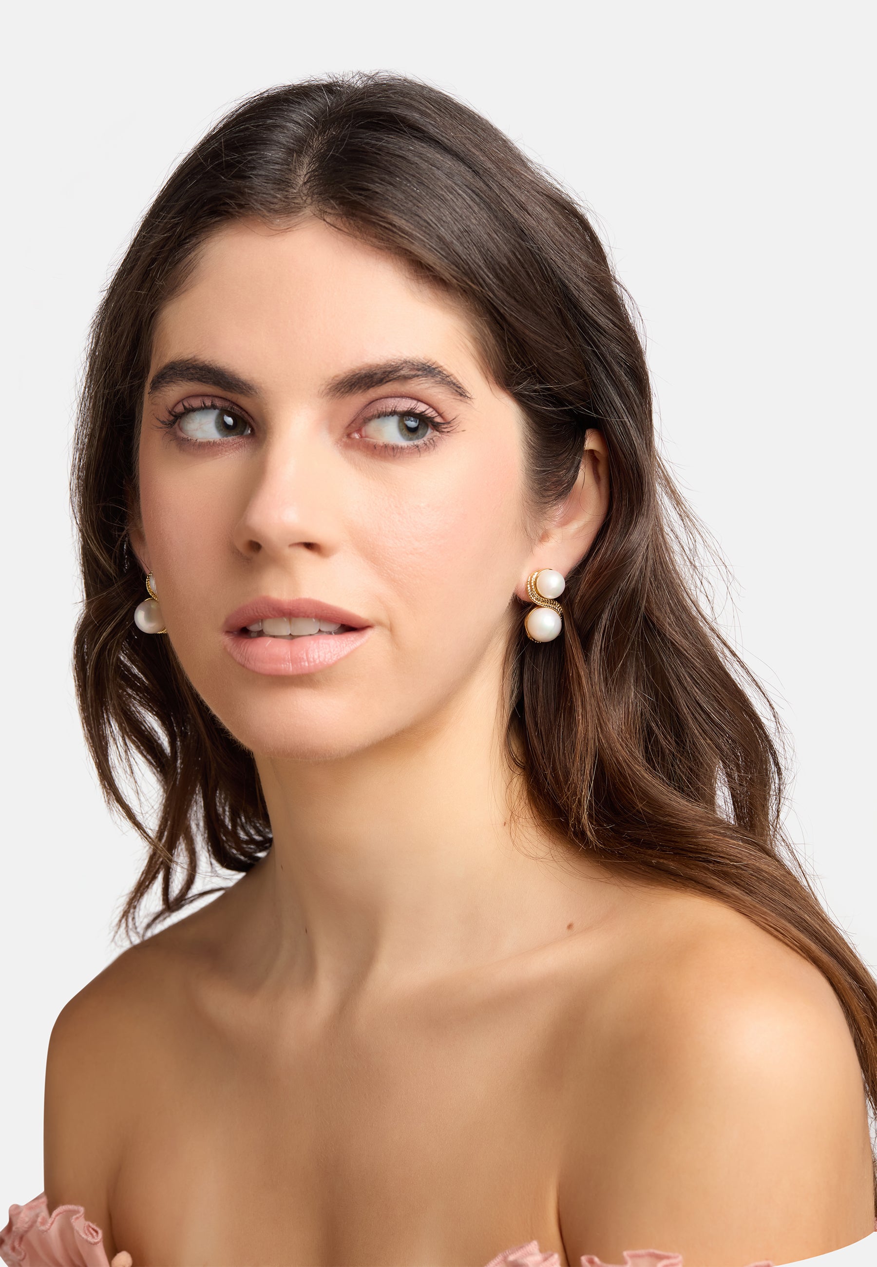 Crafted from 18K gold-plated and accented with freshwater pearls these Sasha earrings are designed to sit beautifully and make heads turn with their elegant silhouette. Lightweight at 6.48g and measuring 2.9cm x 1.5cm, they offer comfort alongside style.