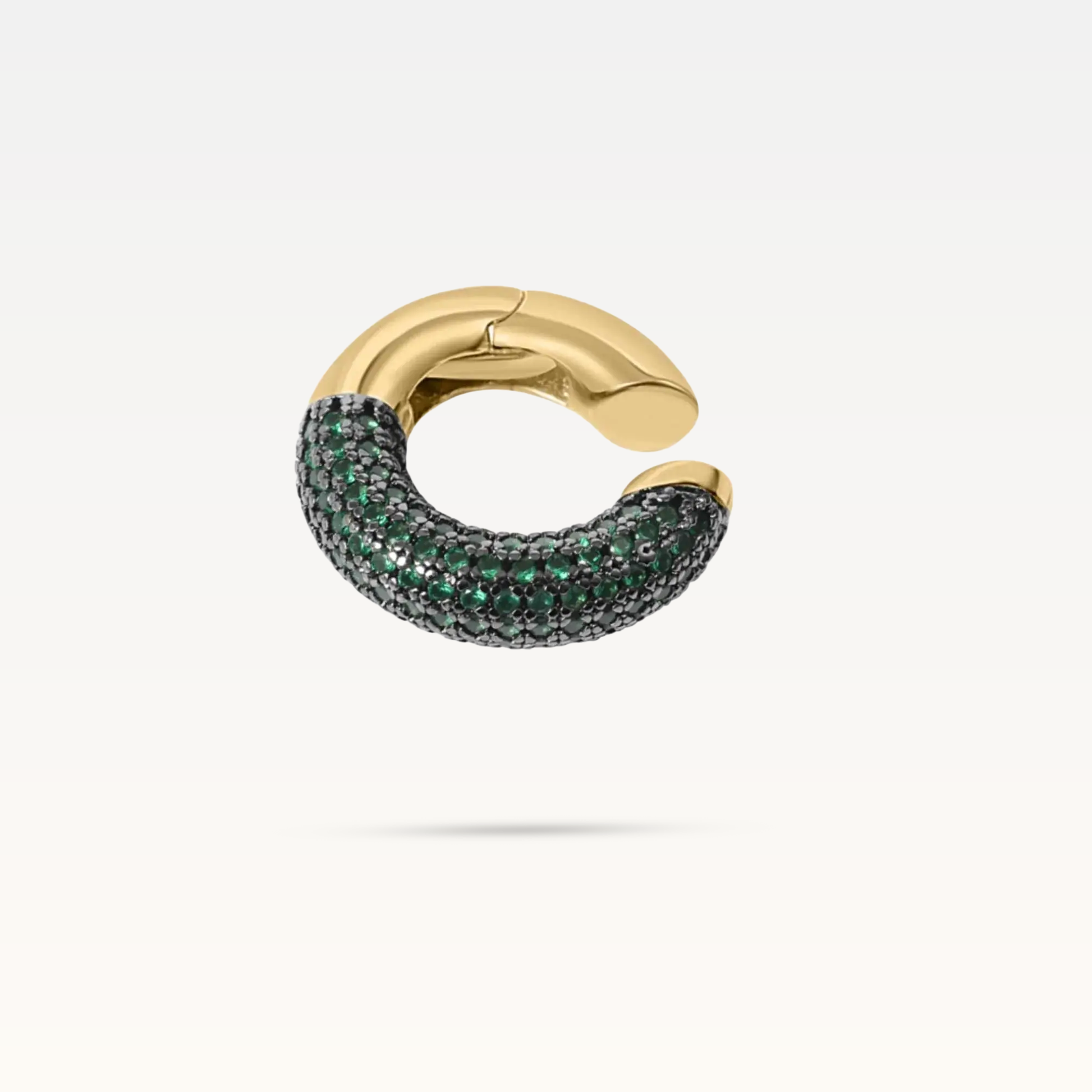 Indulge in elegance with Margot Bardot's Alba Ear Cuff - Green, where simplicity meets sophistication. Crafted from nickel-free 925 gold plated sterling silver and adorned with pavé black zirconias, this ear cuff features delicate curves that enhance any look.