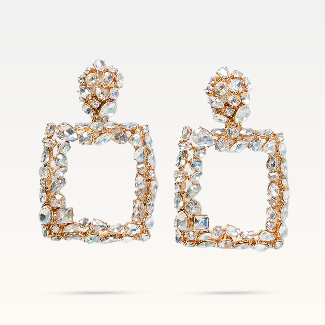 Elevate your style with the ethereal beauty of Margot Bardot's Cadre Multicolore Drop Earrings. These exquisite earrings are crafted from premium zinc alloy and adorned with shimmering crystals that catch the light with every movement.