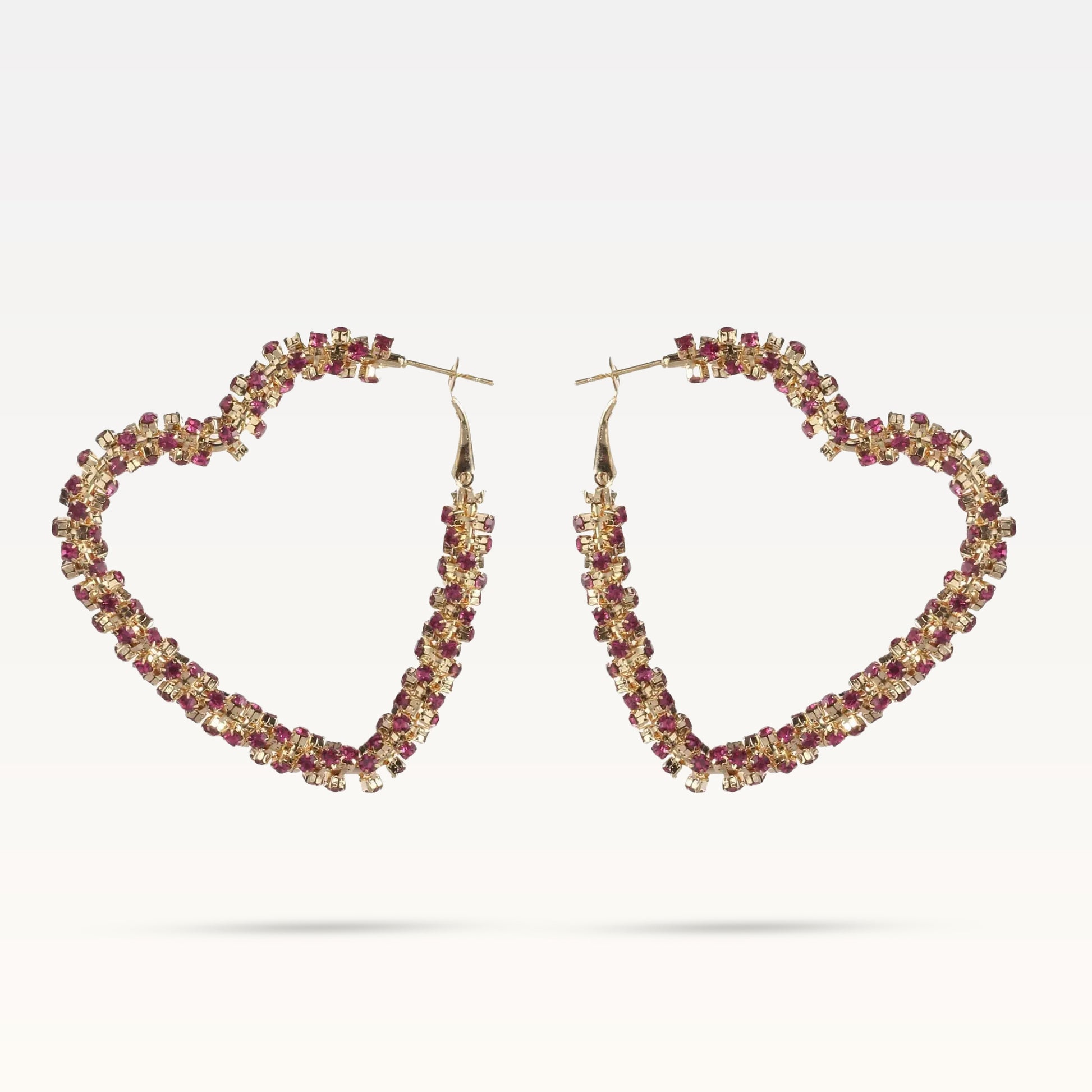 Embrace playfulness and spirit with Margot Bardot's Candy Heart Earrings - Pink. These earrings feature a heart-shaped design crafted from crystal-covered gold-tone hardware, complemented by post-back closures for secure wear.