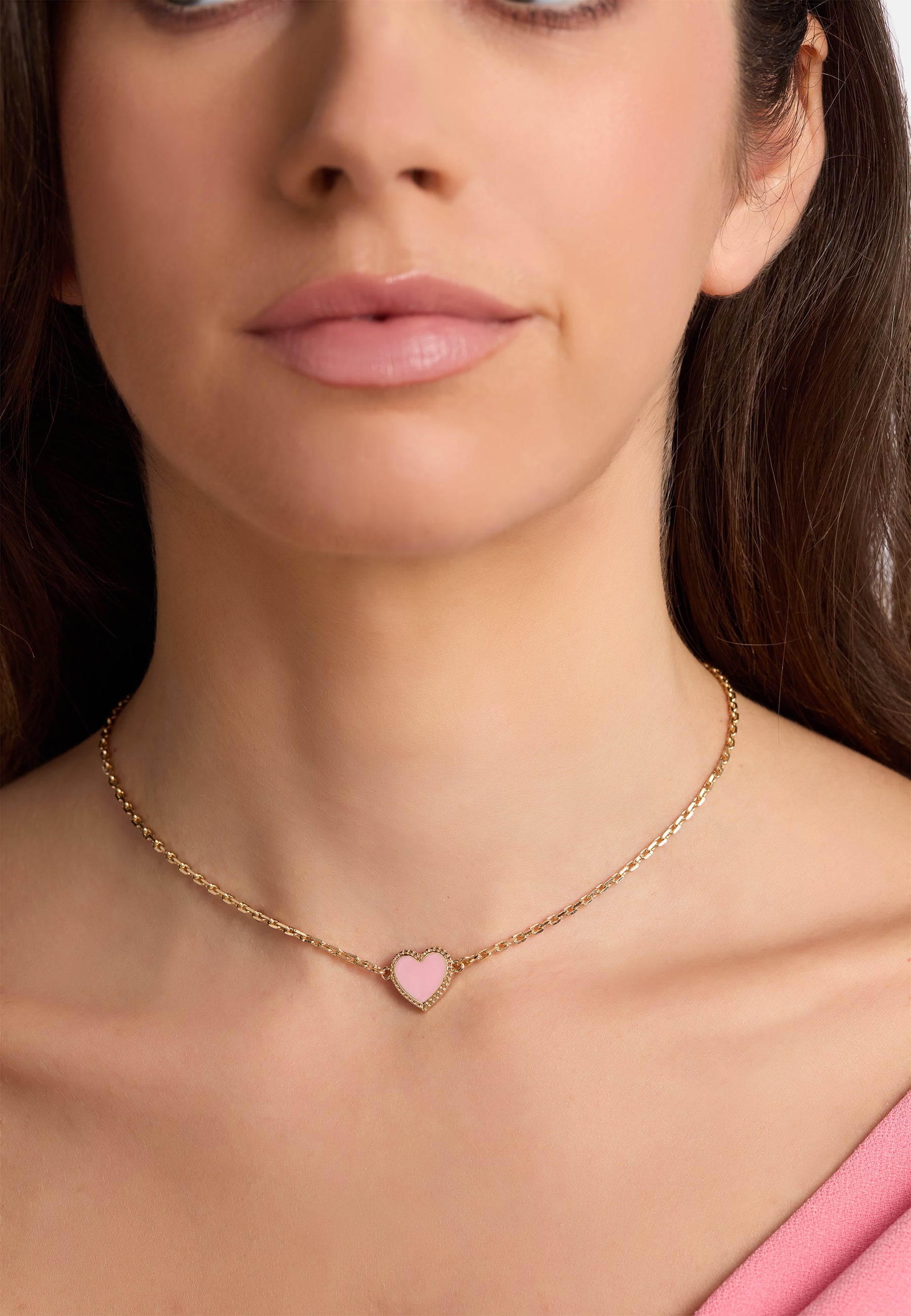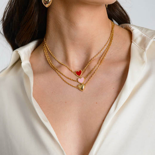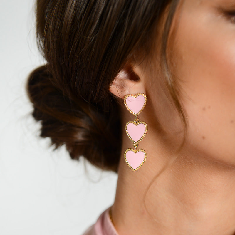 Crafted from 18k gold-plated, nickel-free materials and featuring pink-colored enamel, each piece shines with a high polish finish and our engraved logo, ensuring both quality and style. Imagine the stunning impact of wearing all three pieces together.