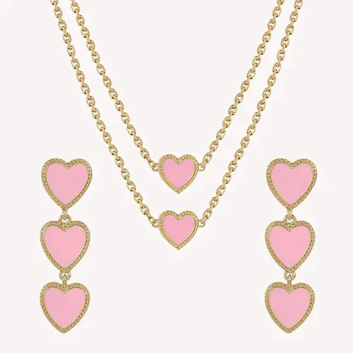 For a limited time, Margot Bardot offers an exclusive deal on our Maeva Maeva Heart Pink Set - Earrings, Bracelet & Necklace, featuring three best-selling pieces at a special discounted price.
