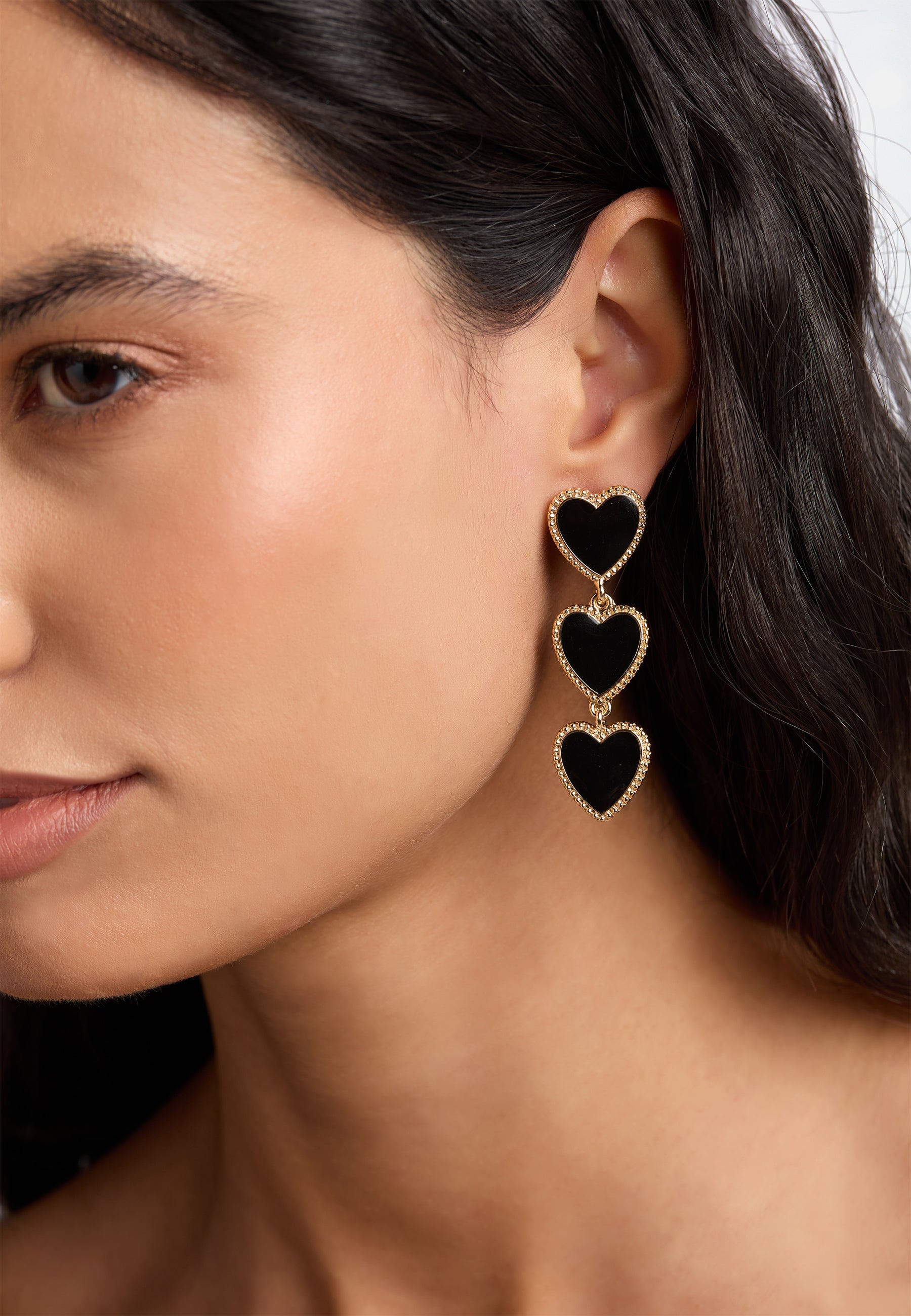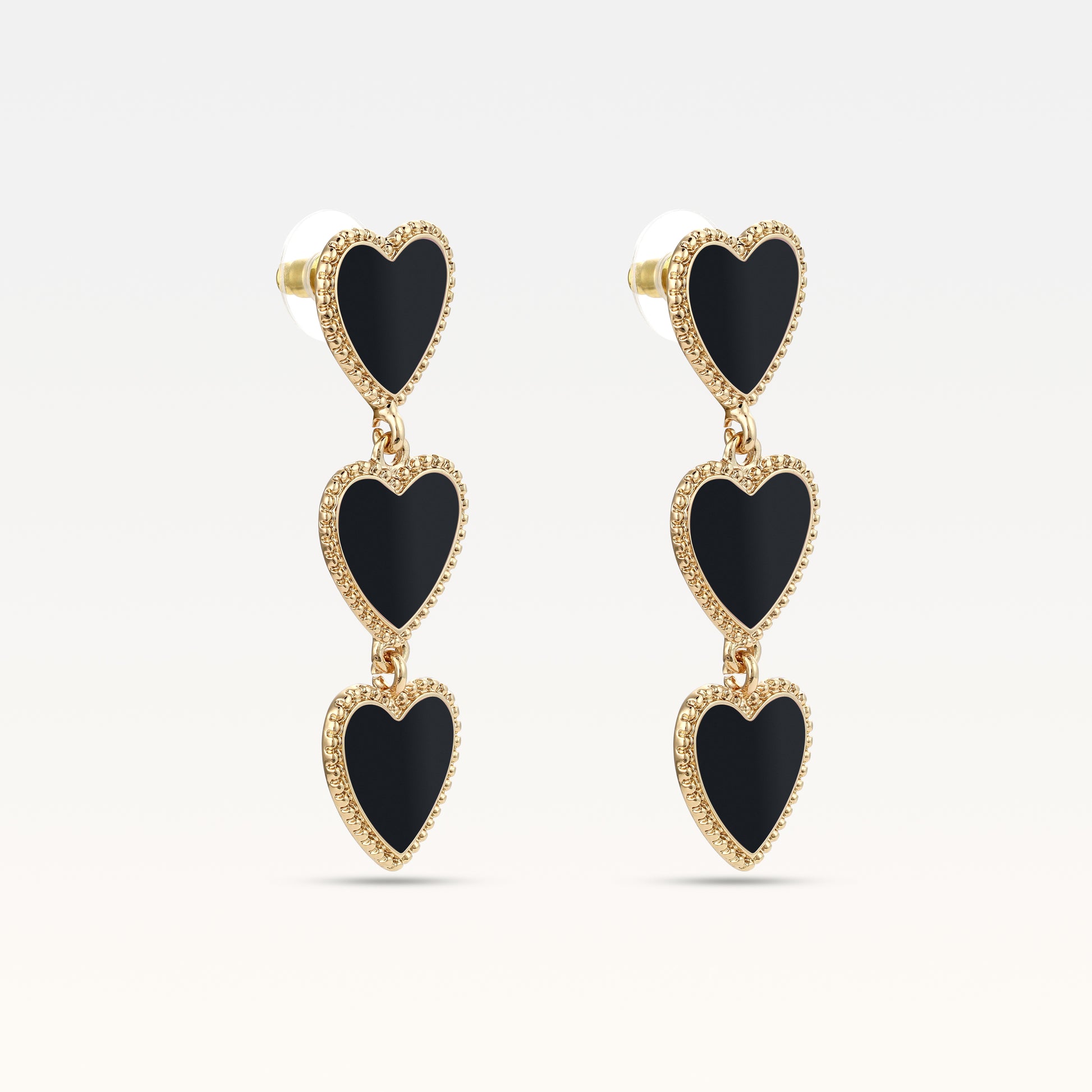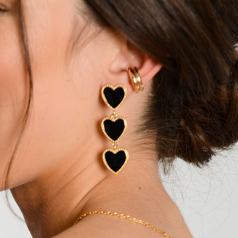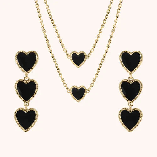 For a limited time, indulge in Margot Bardot's Maeva Heart Black Set - Earrings, Bracelet & Necklace and enjoy three of our best-selling pieces at a discounted price. This stunning collection features exquisite 18k gold-plated jewelry accented with black-colored enamel, blending elegance and sophistication seamlessly.