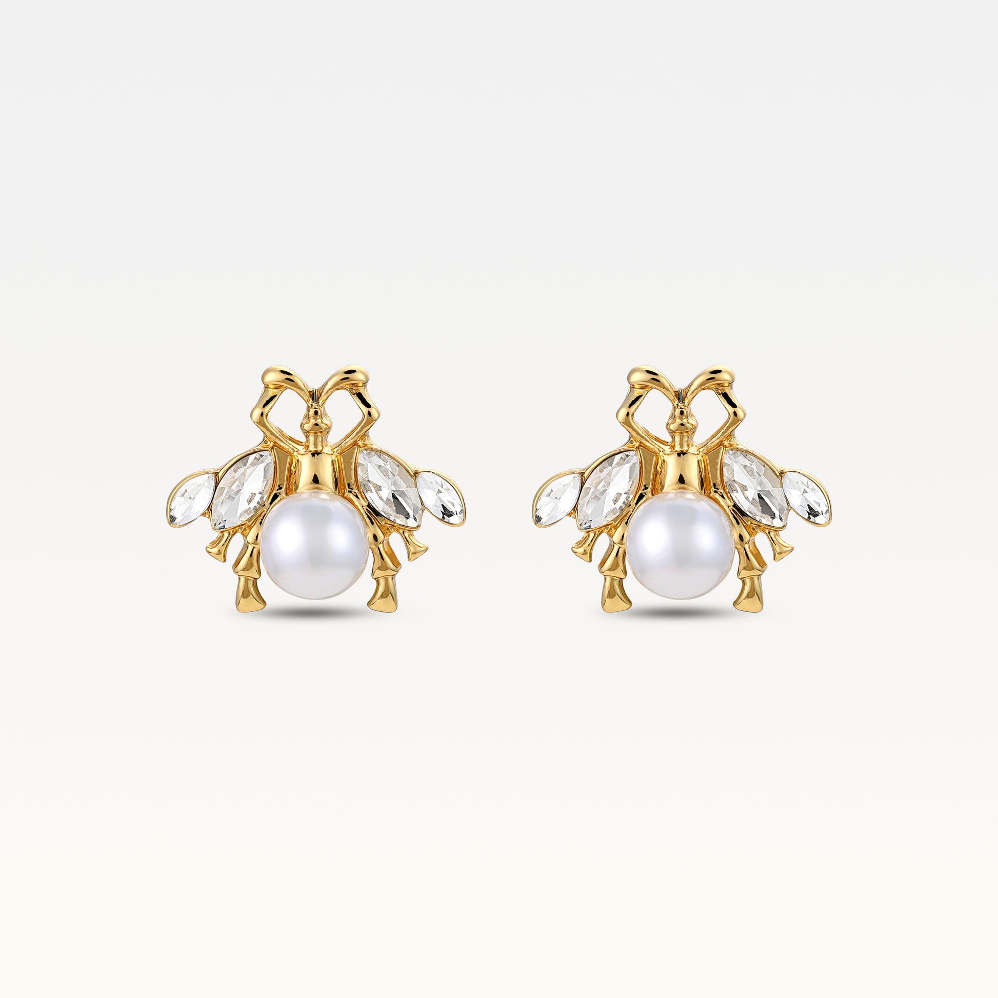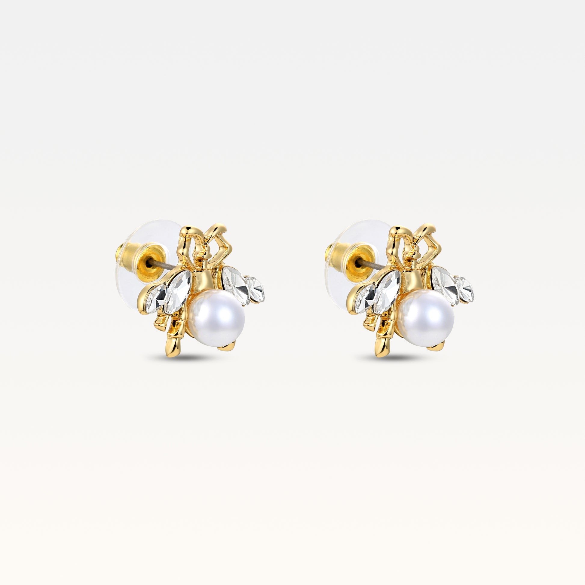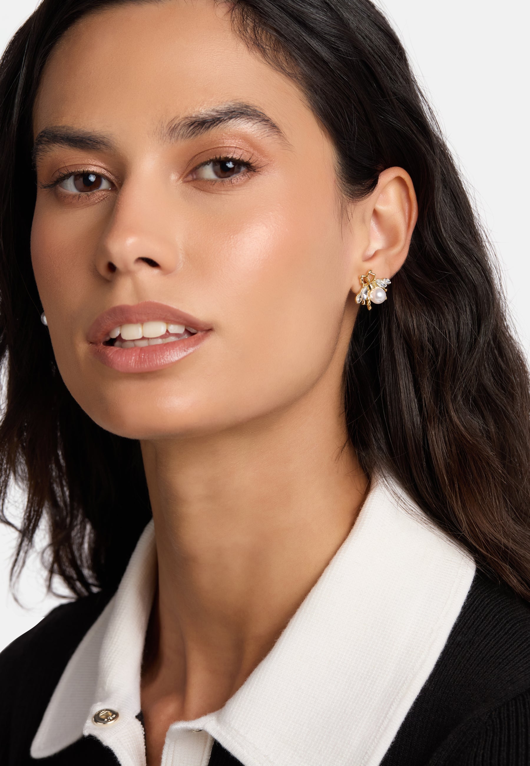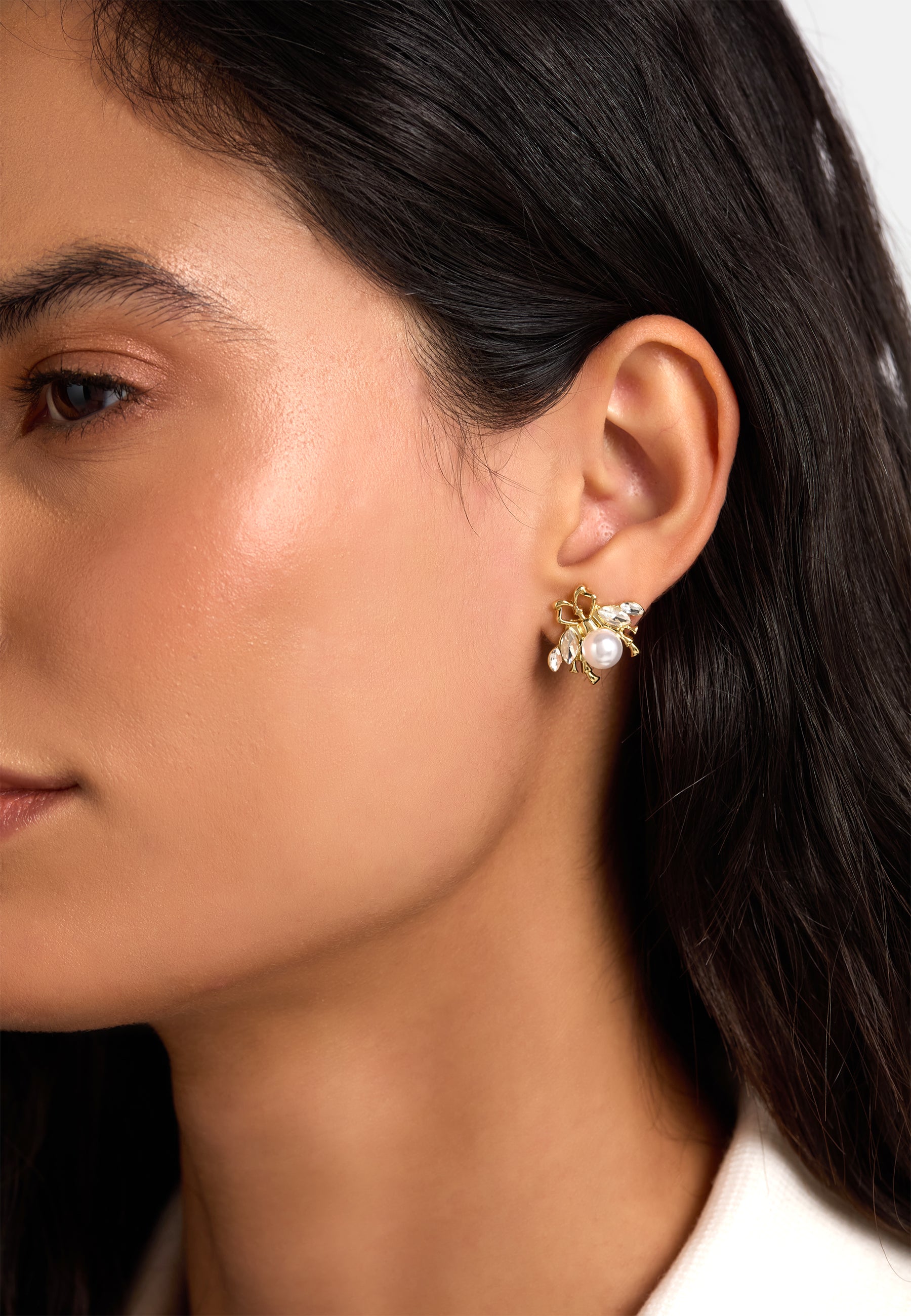 Measuring 1.5cm x 2cm, these earrings are crafted from 18K gold-plated brass and embellished with glass pearls.