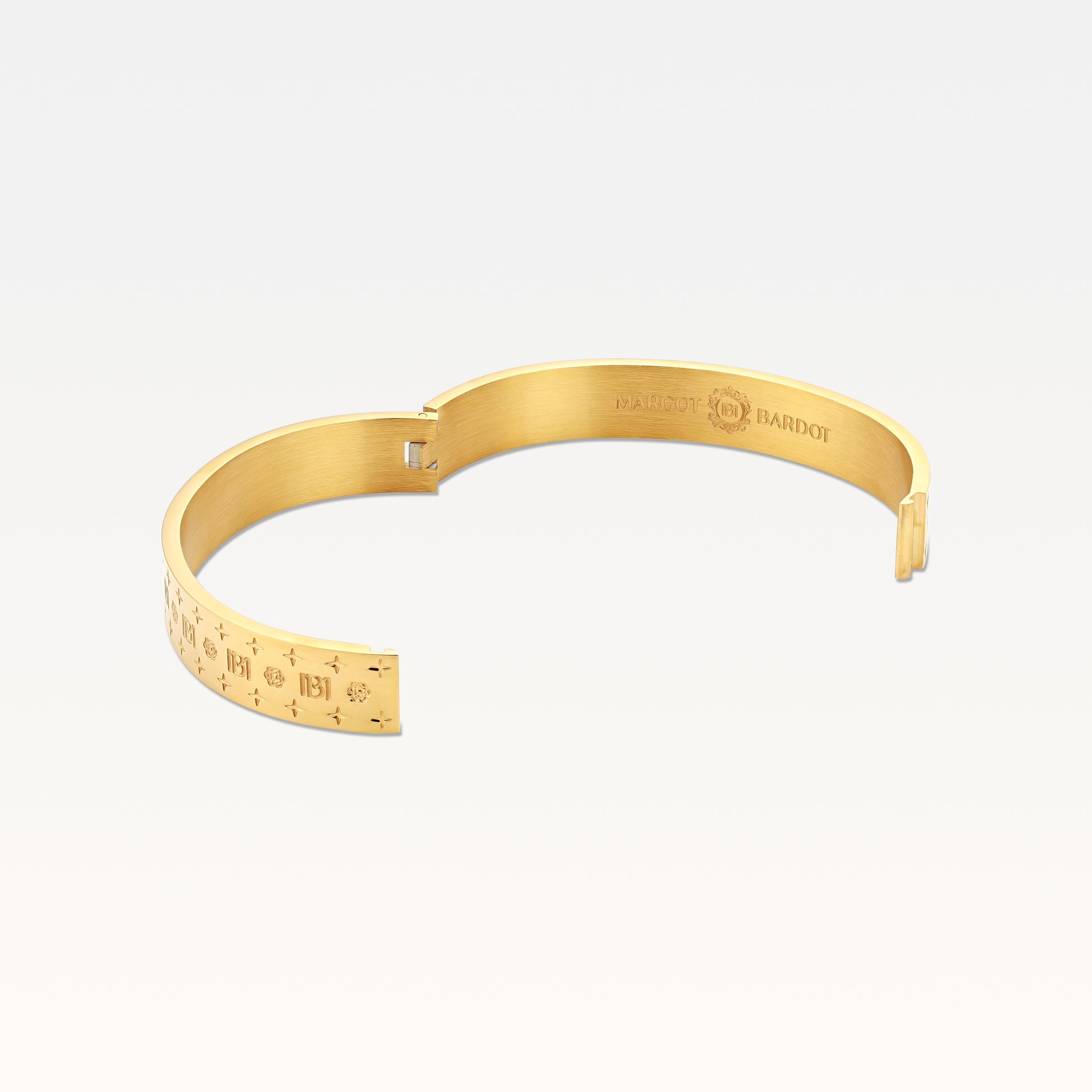 Add a touch of sophistication to your look with Margot Bardot’s MB Signature Classic Gold-Plated Bangle.