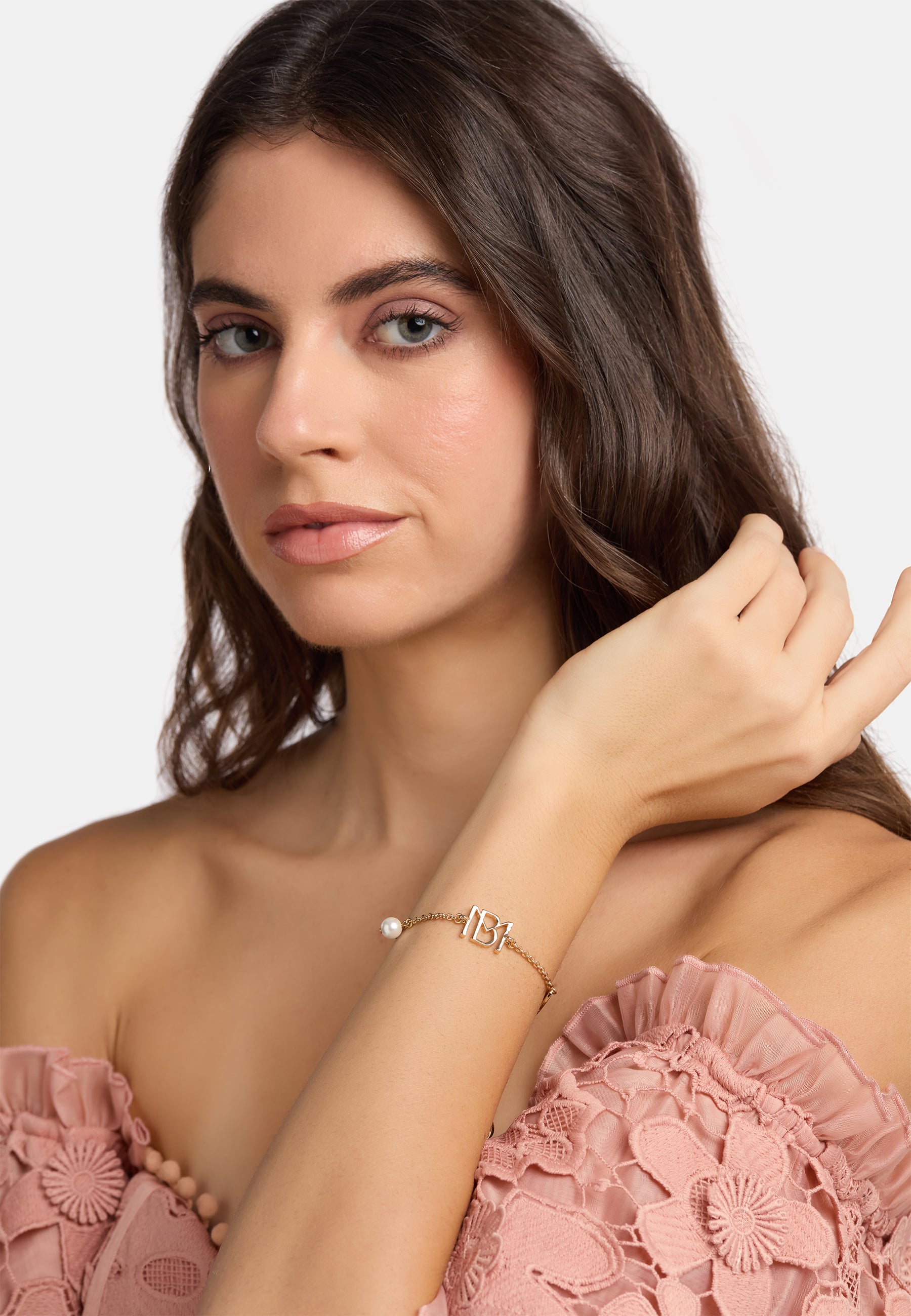 Adorn your wrist with the classic beauty of Margot Bardot’s MB Signature Gold-Plated Pearl Bracelet. Crafted from 18K gold-plated brass and featuring lustrous glass pearls, this bracelet measures 15cm with a 4cm extender, offering a perfect blend of elegance and comfort.