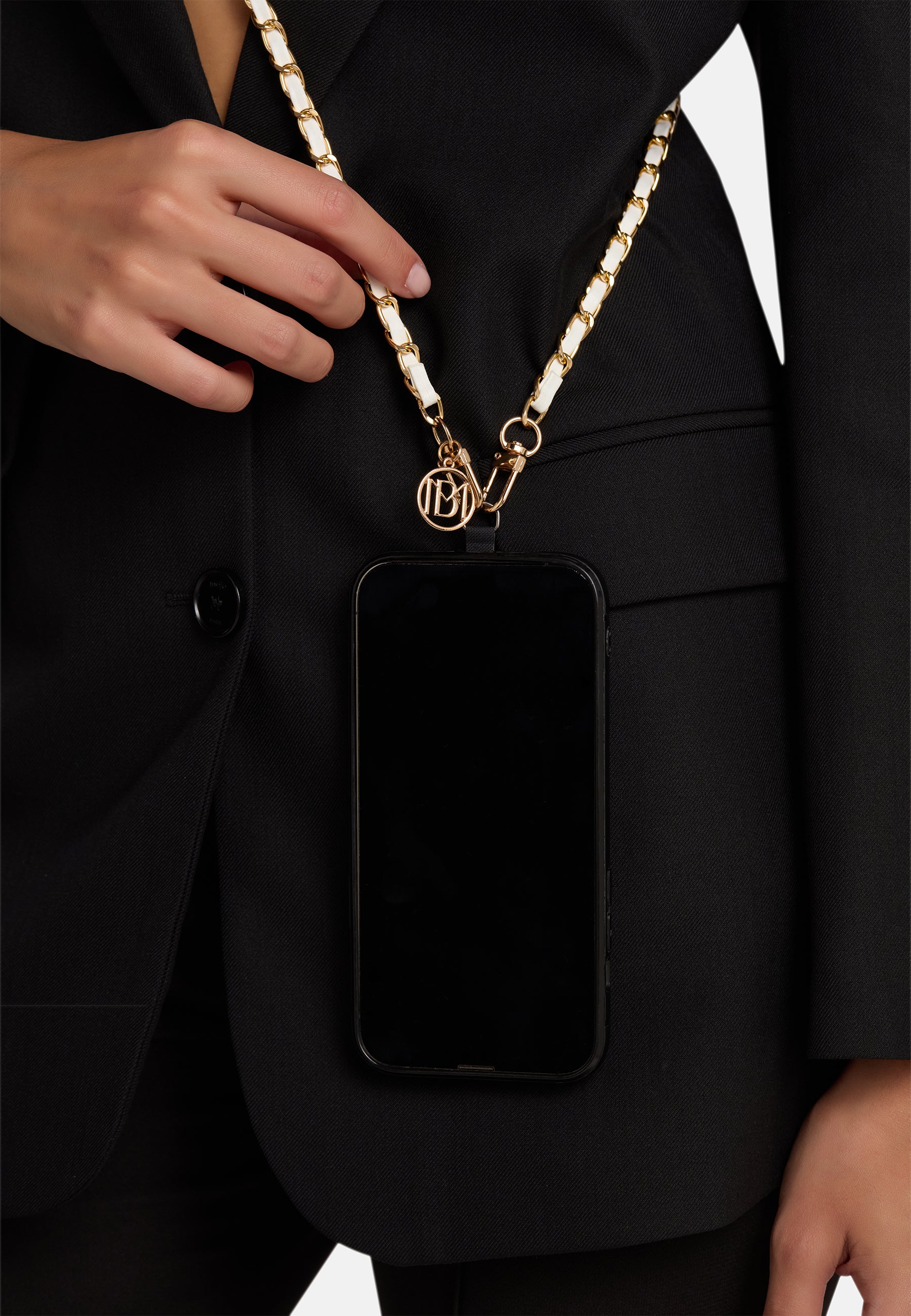 Keep your phone stylishly secure with Margot Bardot’s MB Signature Pearl White Phone Necklace.