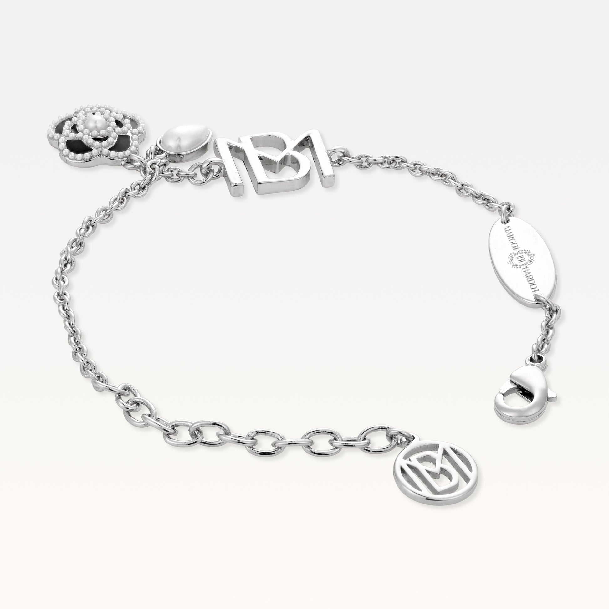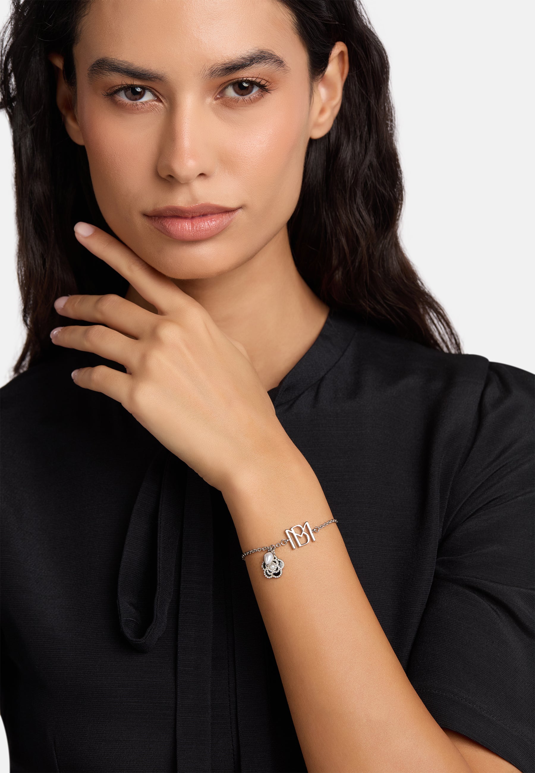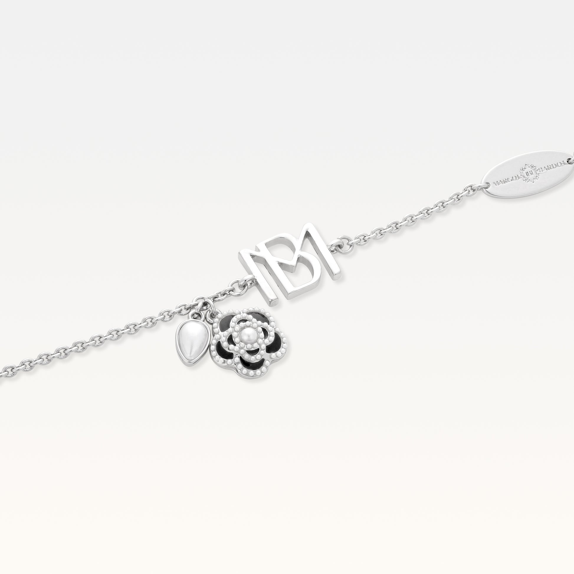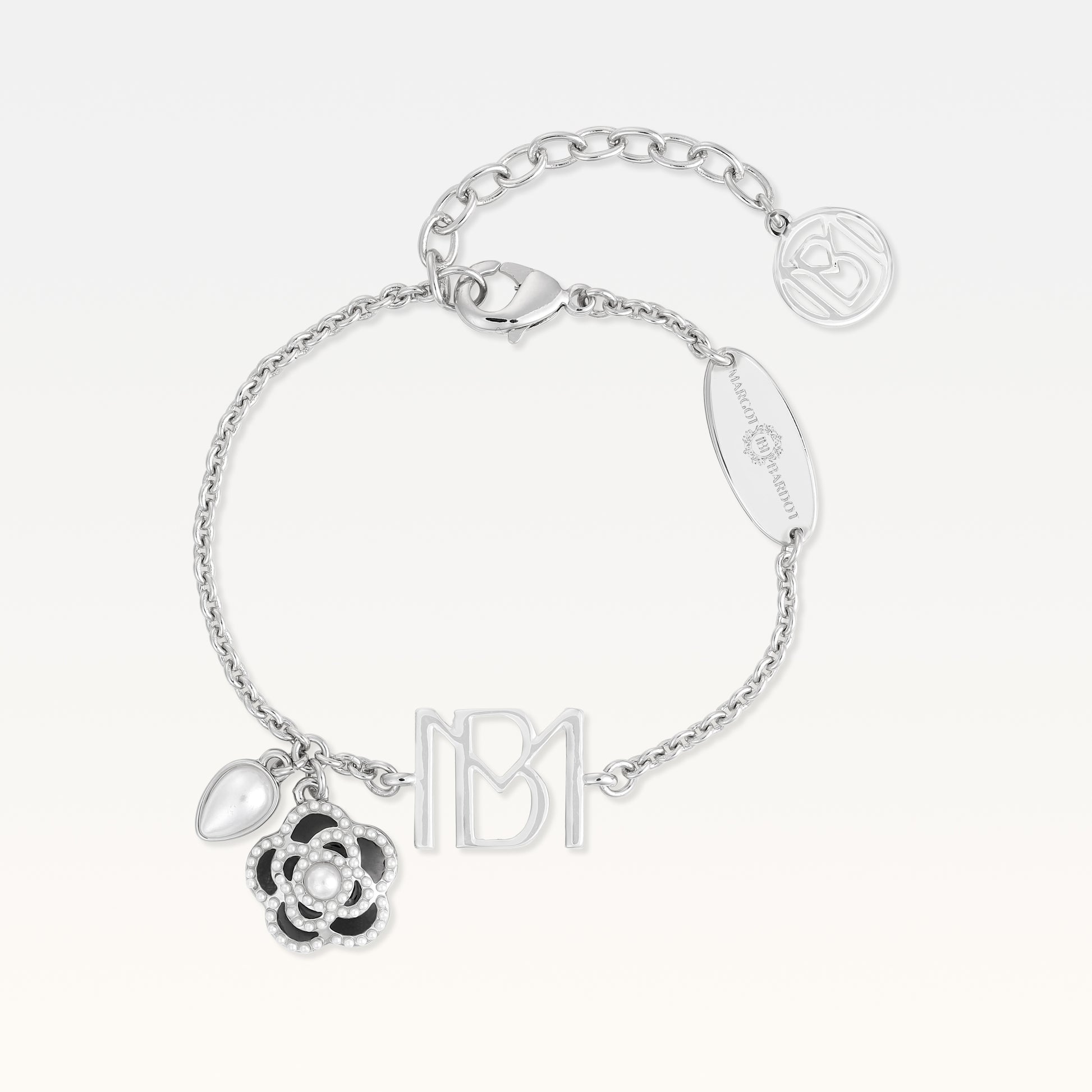 Grace your wrist with Margot Bardot’s MB Signature Silver-Plated Camelia Bracelet, crafted for a timeless look. Measuring 15cm with a 4cm extender, this bracelet is made from 70-micron silver-plated brass and features delicate glass pearls.
