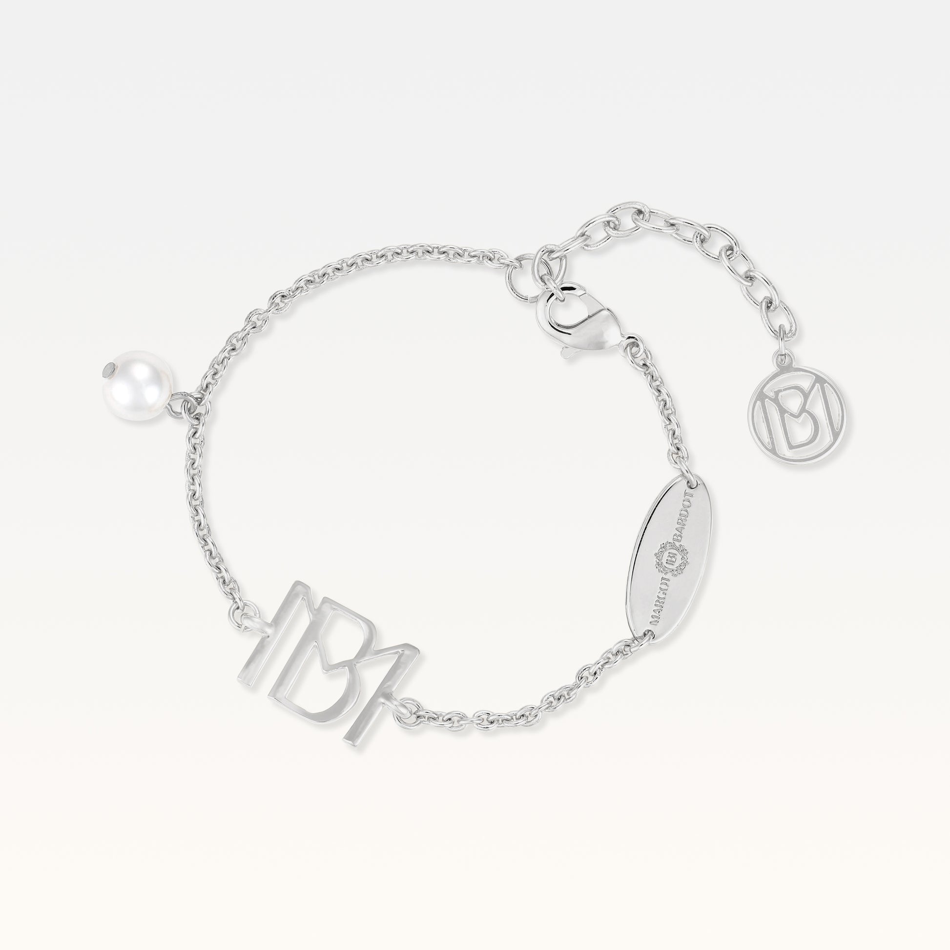 Margot Bardot’s MB Signature Silver-Plated Pearl Bracelet brings a touch of elegance to your wrist. Crafted from 70-micron silver-plated brass and adorned with lustrous glass pearls, this bracelet measures 15cm with a 4cm extender for a comfortable, adjustable fit.