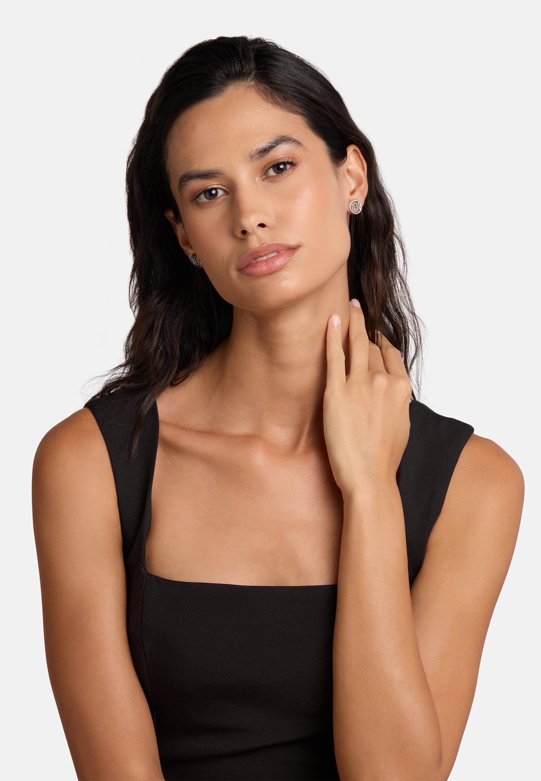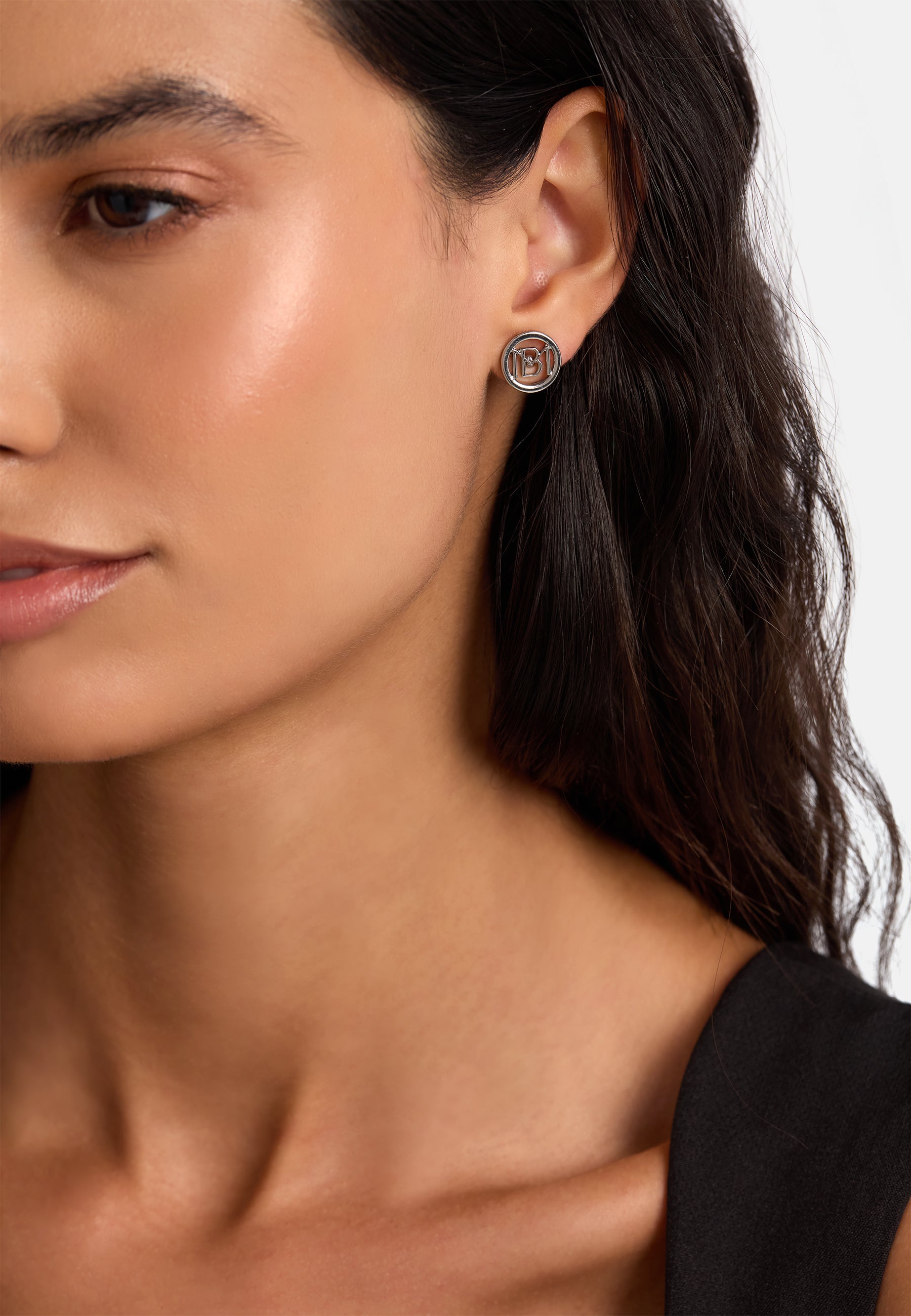 Elevate your accessory collection with Margot Bardot’s MB Signature Silver-Plated Stud Earrings.