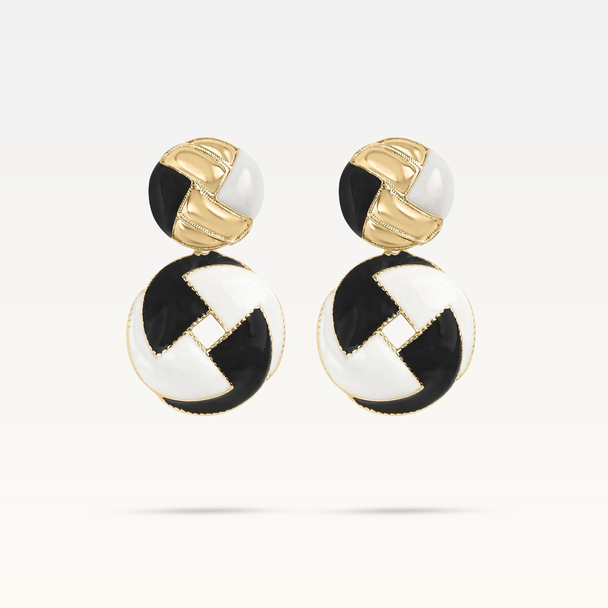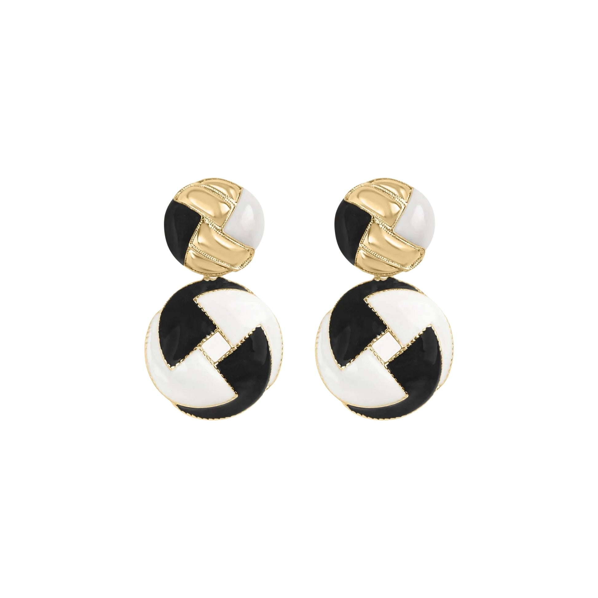Add a touch of fun and flirty charm to your everyday style with Margot Bardot's Lilith Earrings - Gold. Crafted from nickel-free stainless steel and enamel, these earrings feature a stylish black-and-white design that effortlessly complements any outfit.