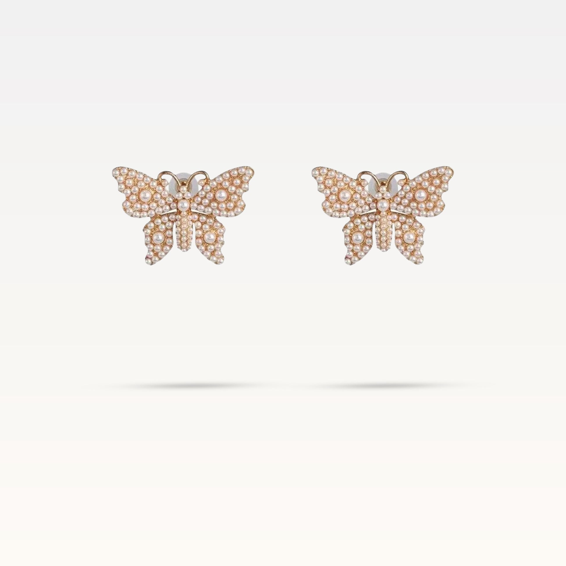 Embrace elegance and symbolism with Margot Bardot's Janina Butterfly Earrings - Gold. Symbolizing grace, transformation, and personal growth, these earrings feature lustrous simulated pearls delicately framed by sparkling brilliant-cut zirconia.