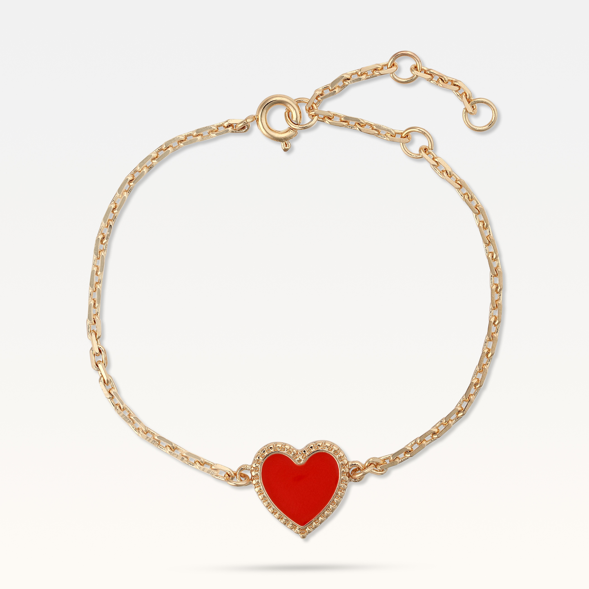Elevate your style effortlessly with MB Maeva Gold-Plated Red Heart Bracelet, a blend of chic design and timeless elegance. Crafted from 18k gold plated material with a charming black-colored enamel heart pendant, this bracelet exudes romance and femininity.