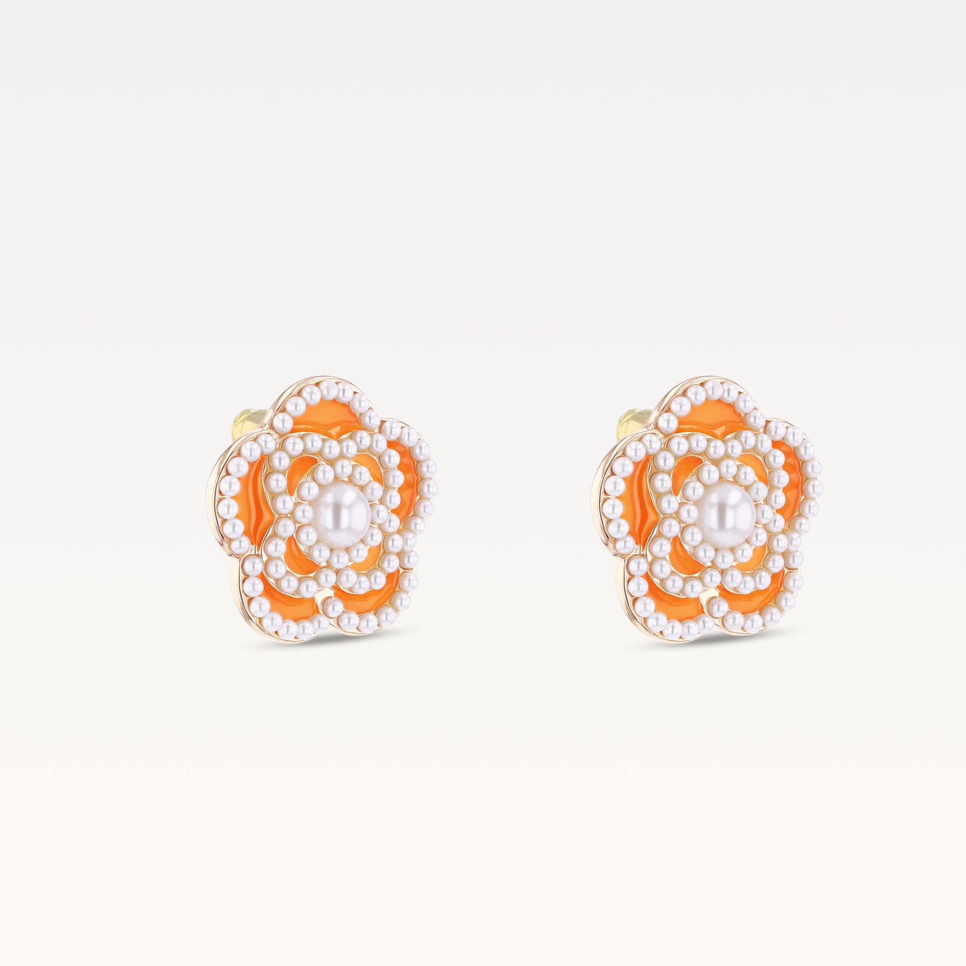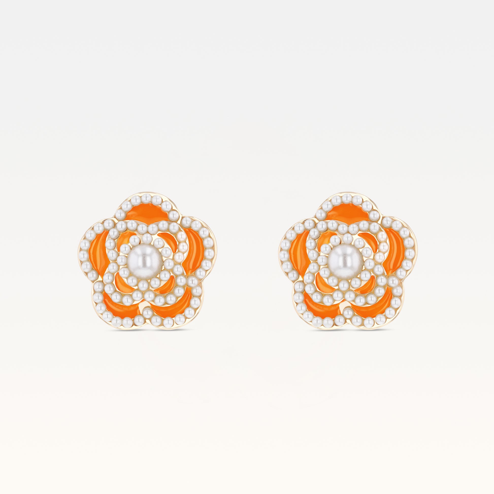 MB Côte d'Azur Gold-Plated Vibrant Luxury Orange Camélia Earrings