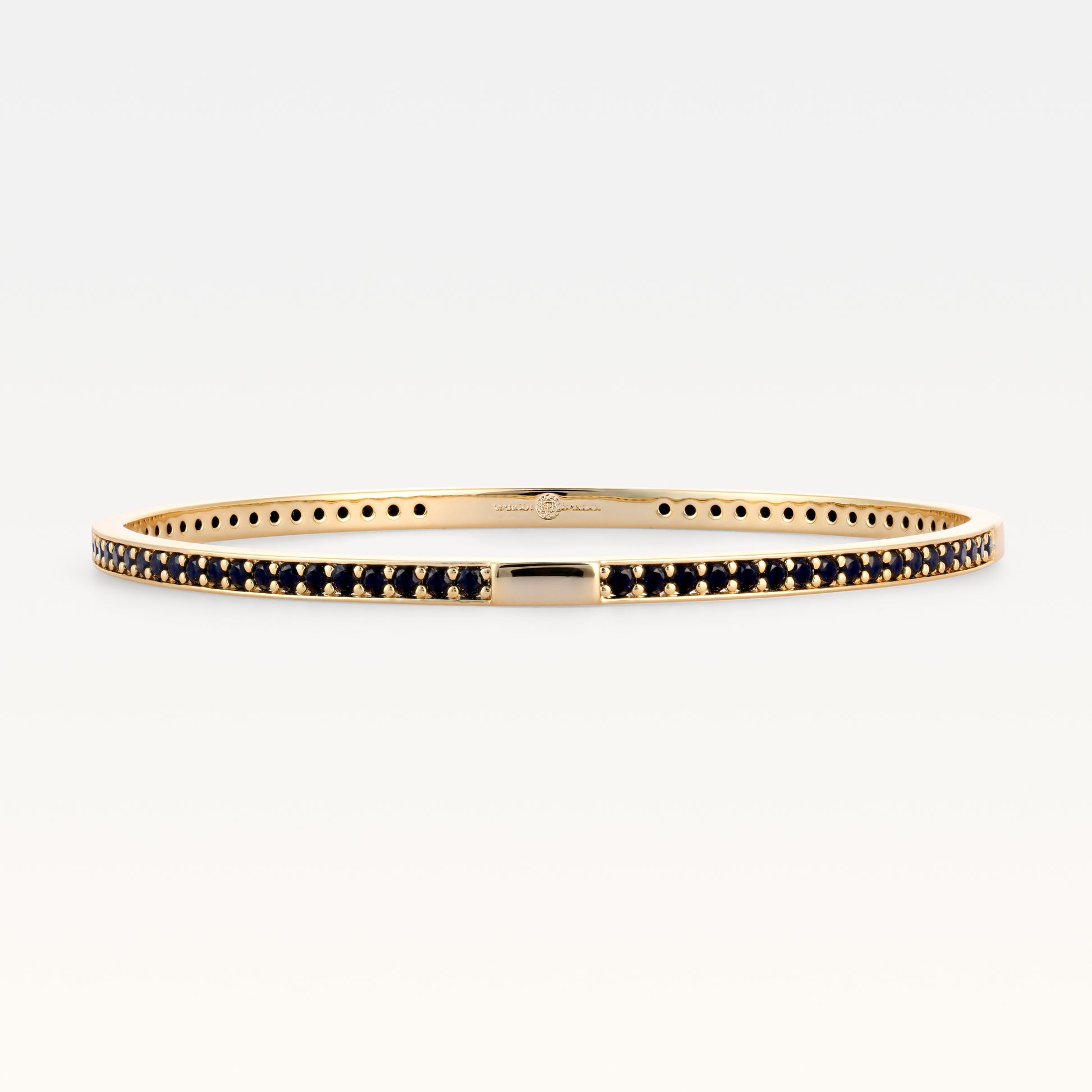 With a refined 3mm x 2.3mm profile, it offers a minimalist yet eye-catching aesthetic, perfect for stacking or wearing solo. Weighing 9.2g, the MB Signature Gold Plated Amélie Noir Pavé Bangle is designed for effortless wear, delivering both comfort and a high-end feel.