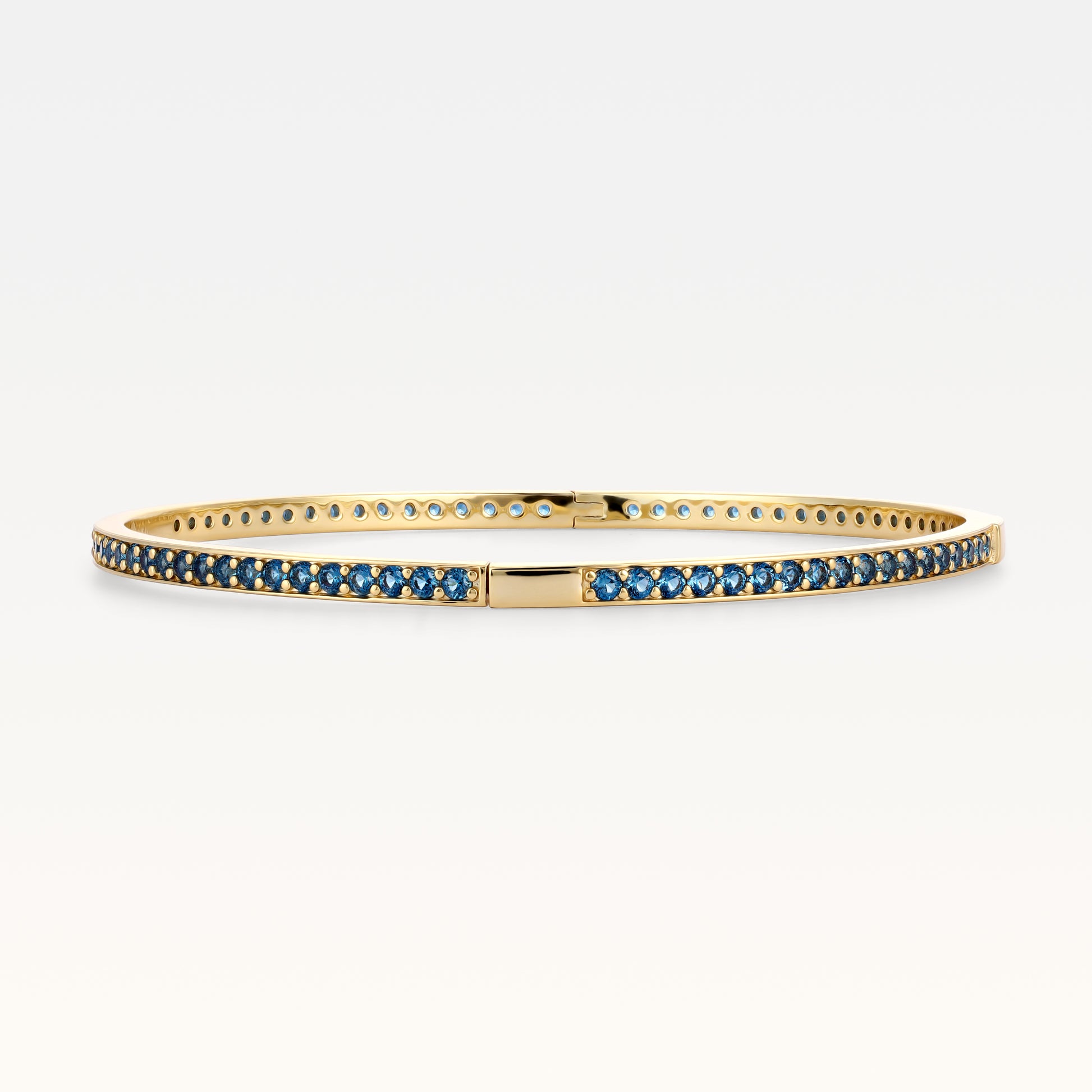 With a refined 3mm x 2.3mm profile, it offers a minimalist yet eye-catching aesthetic, perfect for stacking or wearing solo. Weighing 9.2g, the MB Signature Gold-Plated Amélie Azure Pavé Bangle is designed for effortless wear, delivering both comfort and a high-end feel.