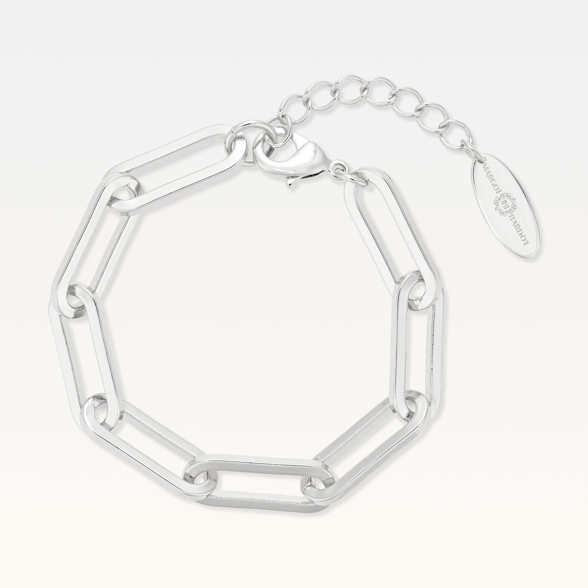 Margot Bardot’s MB Signature Silver-Plated Link Bracelet is a must-have for your jewelry collection. Measuring 15cm with a 4cm extender, this piece is made from 70-micron silver-plated brass and features oversized links for a bold, modern look. Complete with a 365-day warranty, it offers both style and durability.