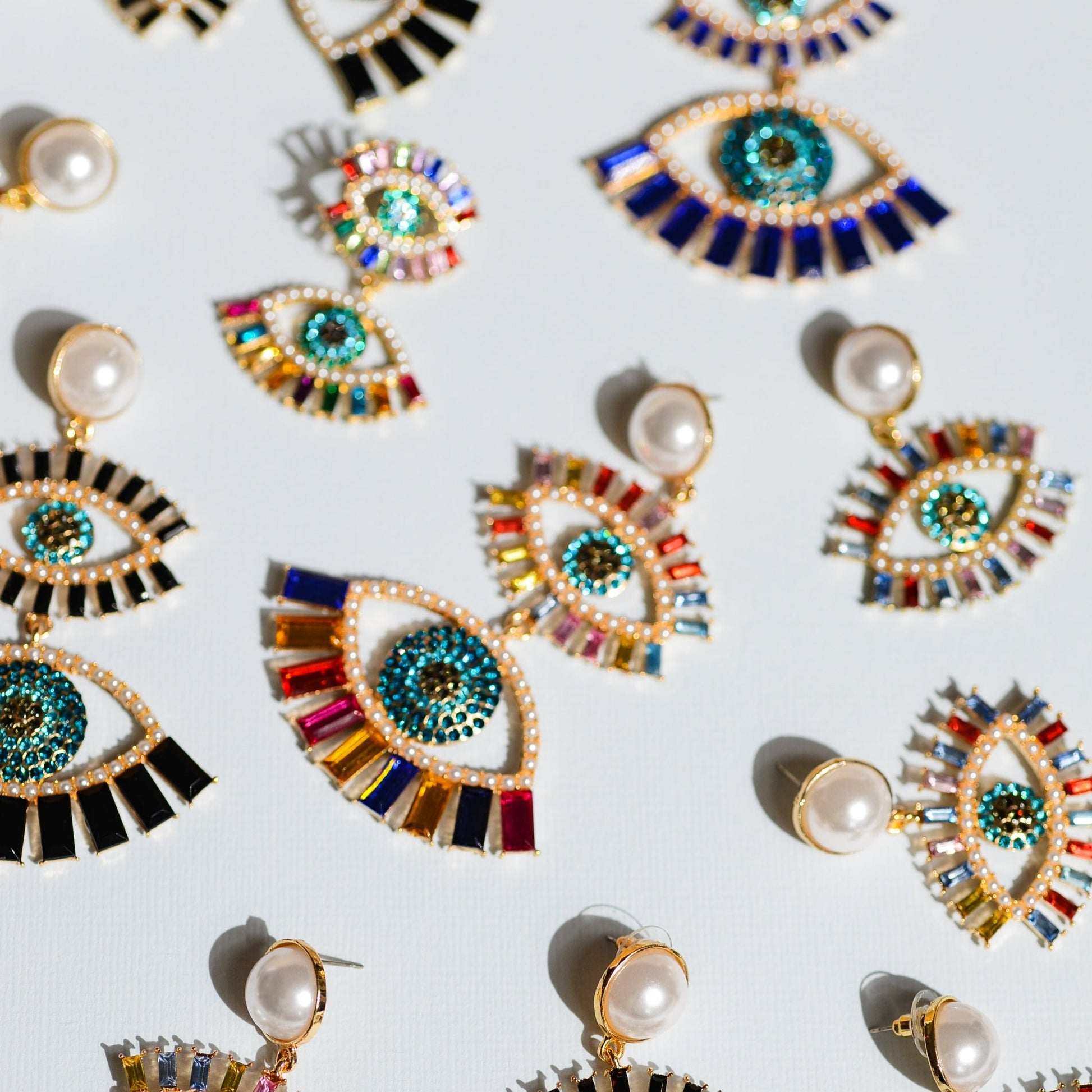 Keep your style watchful and chic with Margot Bardot's Mioumiou Eye Earrings - Gold, a stunning blend of colorful gemstones and a perfectly-round pearl stud designed to catch every eye.