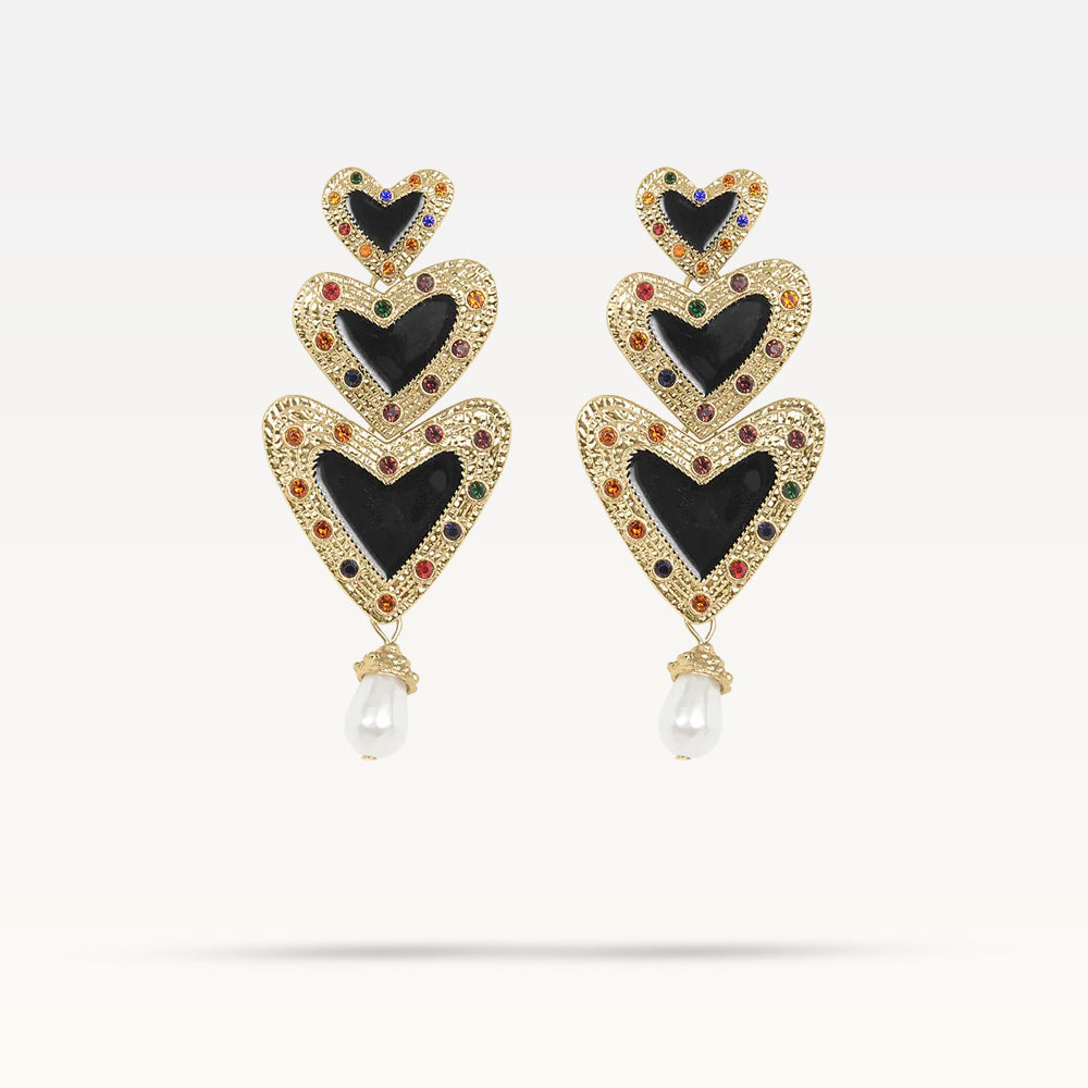 Discover timeless elegance with Margot Bardot's Party Love Earrings - Golds exquisite Heart-shaped Teardrop Drop Earrings. Crafted from nickel-free stainless steel, these earrings boast a striking three-tier design that cascades gracefully, capturing attention with every sway.
