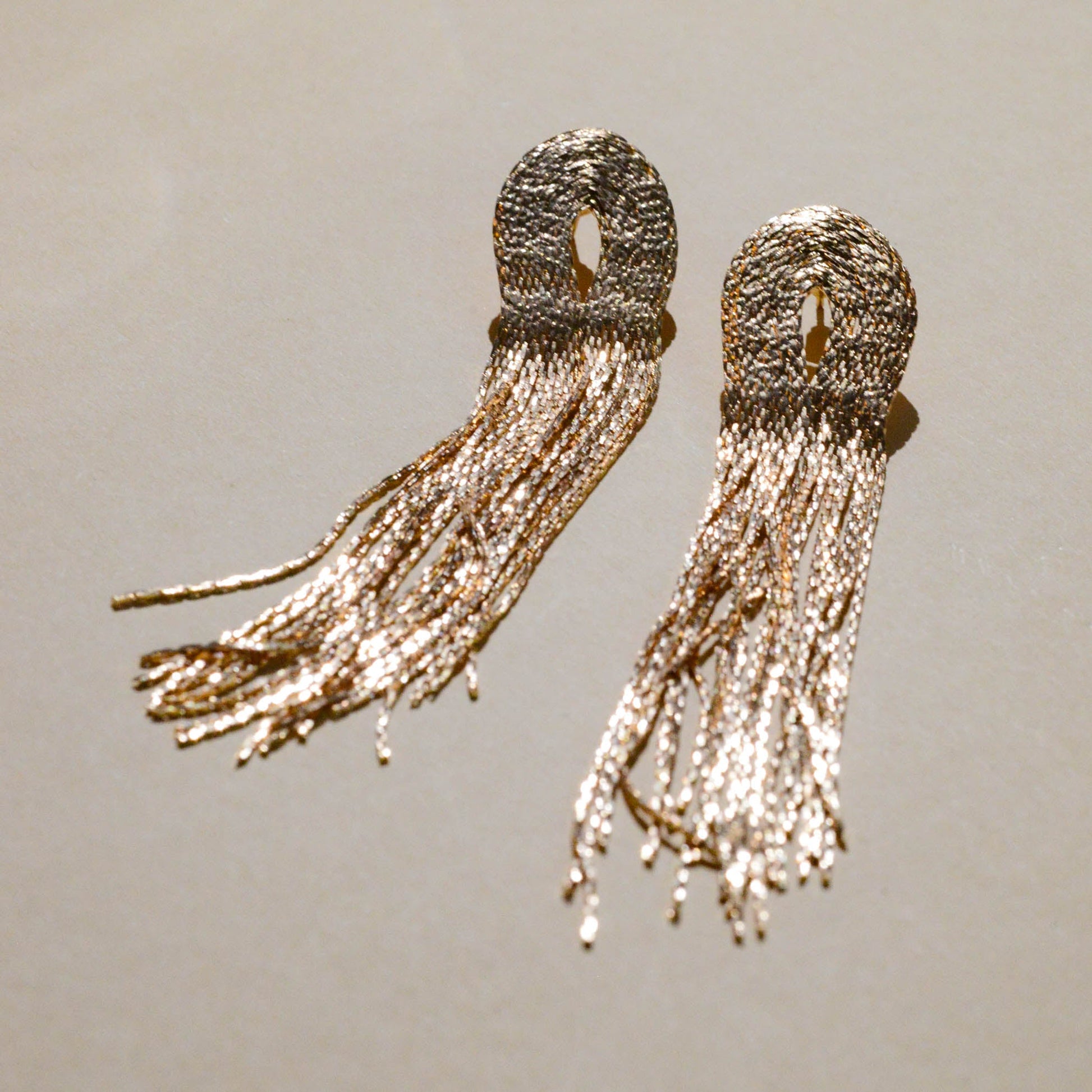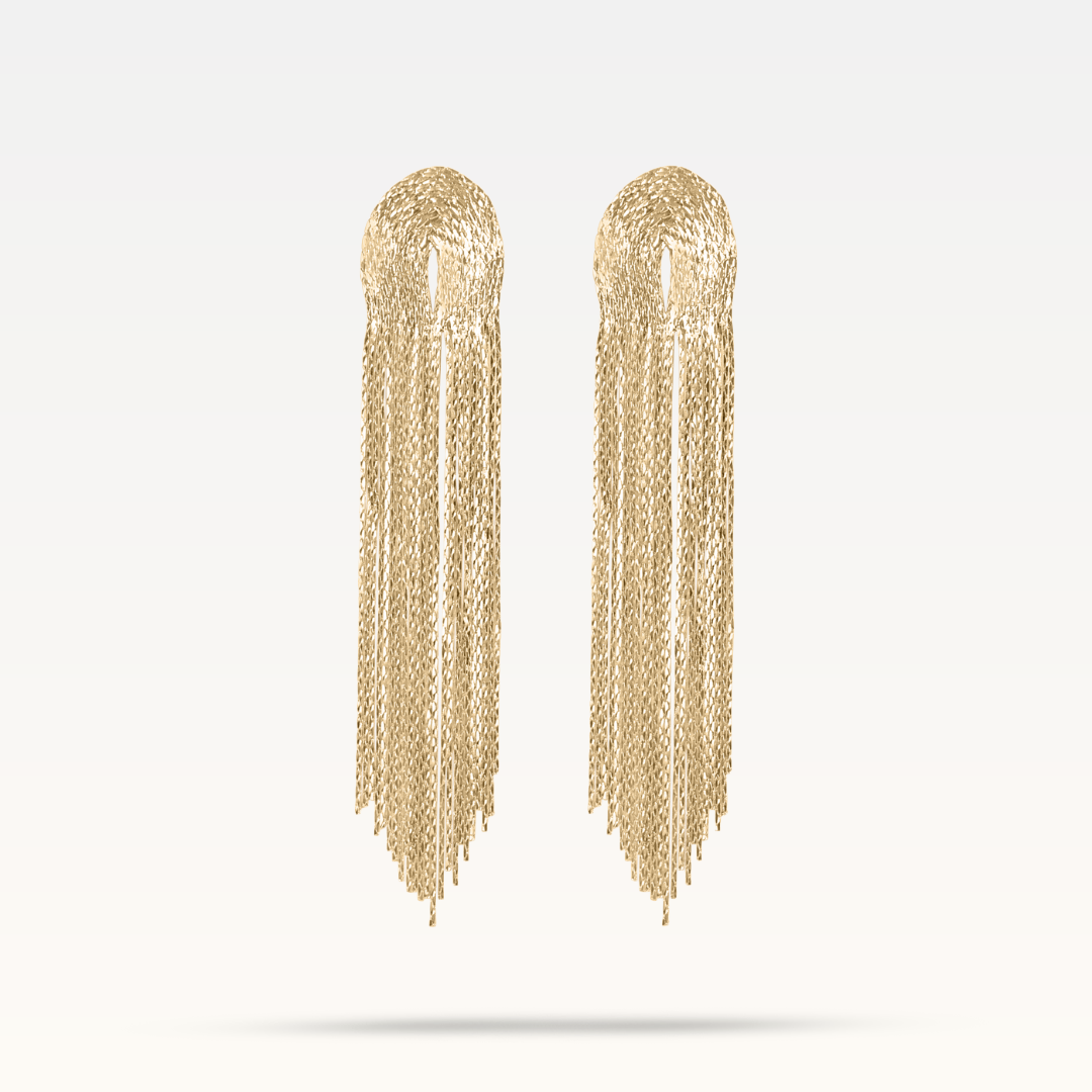 Transform your look with the free-spirited charm of Margot Bardot's Asim Long Earrings - Gold. These stunning earrings exude a bohemian vibe with their gorgeous long metallic fringe, making them a perfect addition to any outfit, day or night.